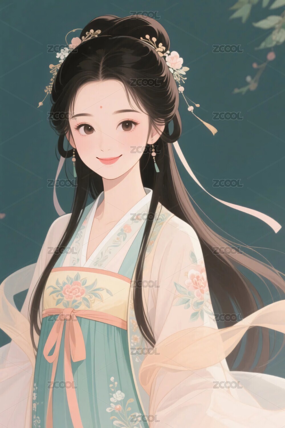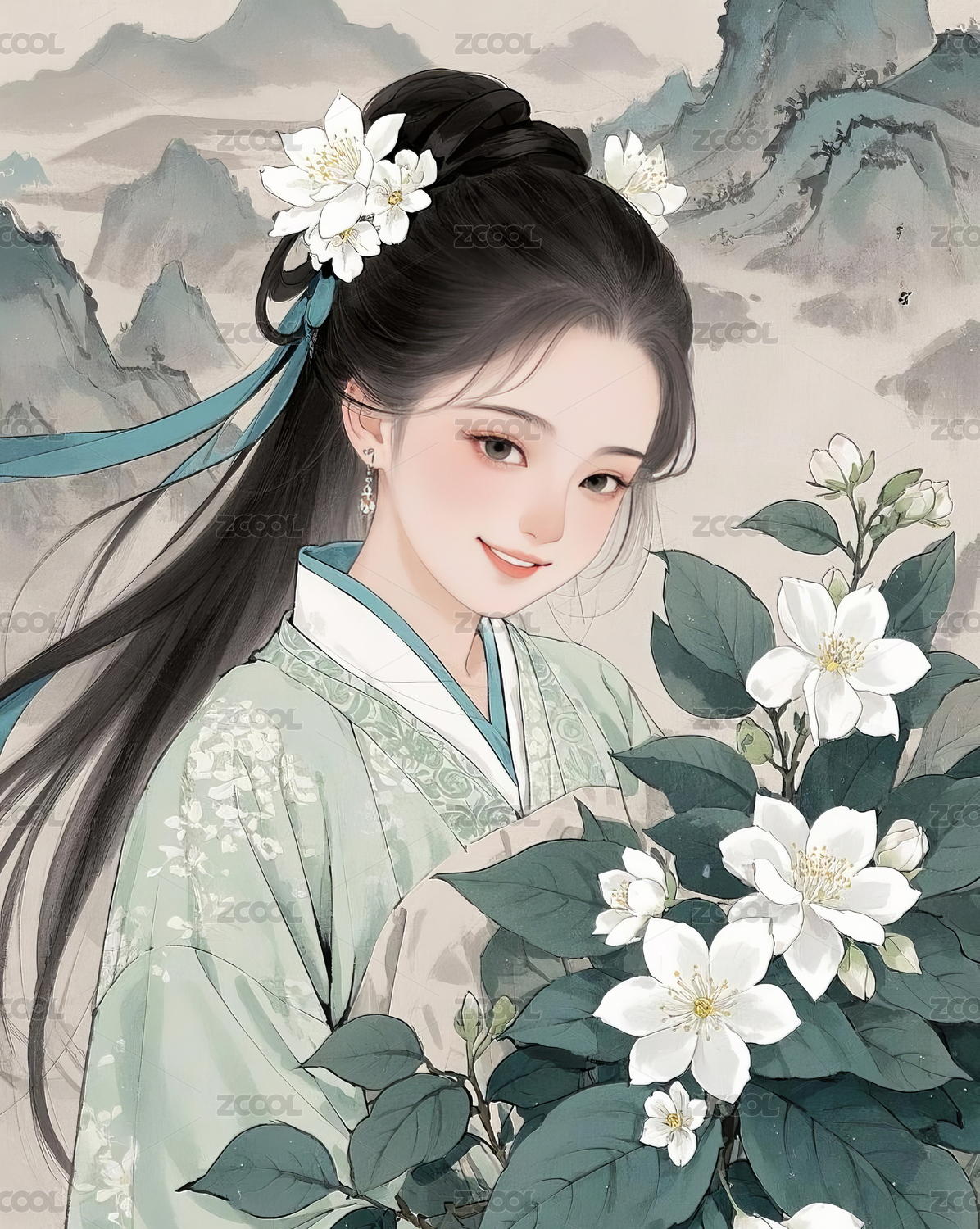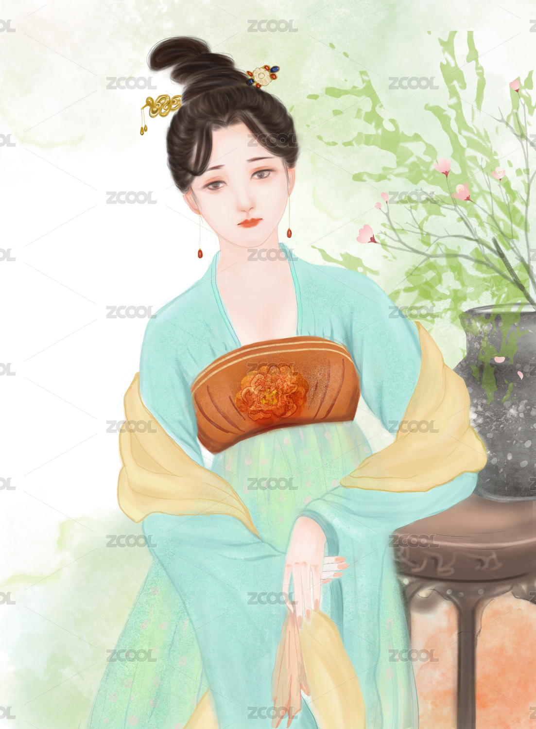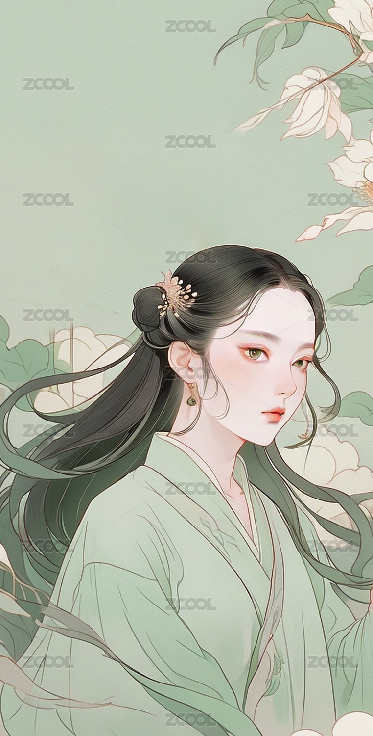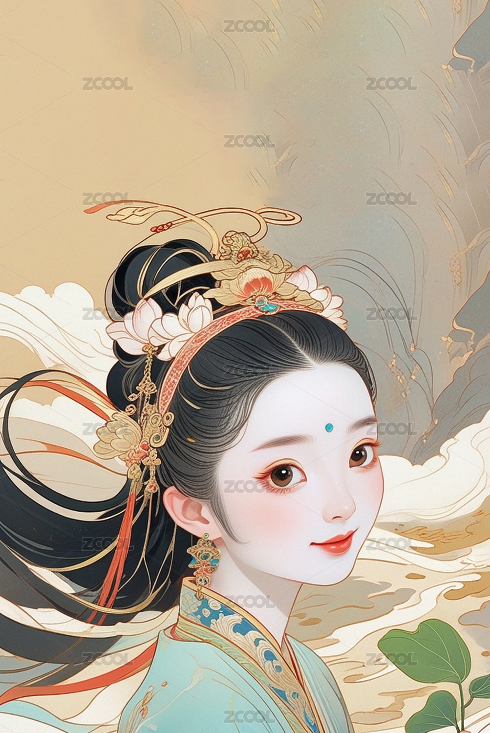 国潮,中国风,女孩,人物,插画,写意,创意,艺术,AIGCFG,古典