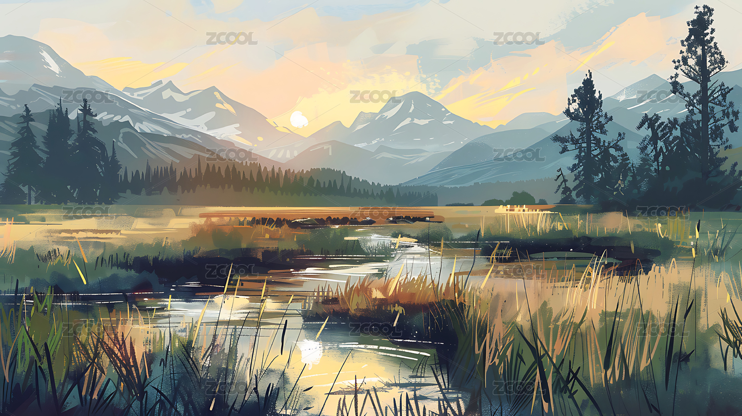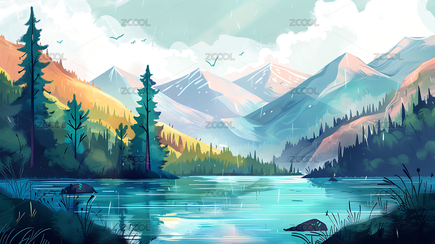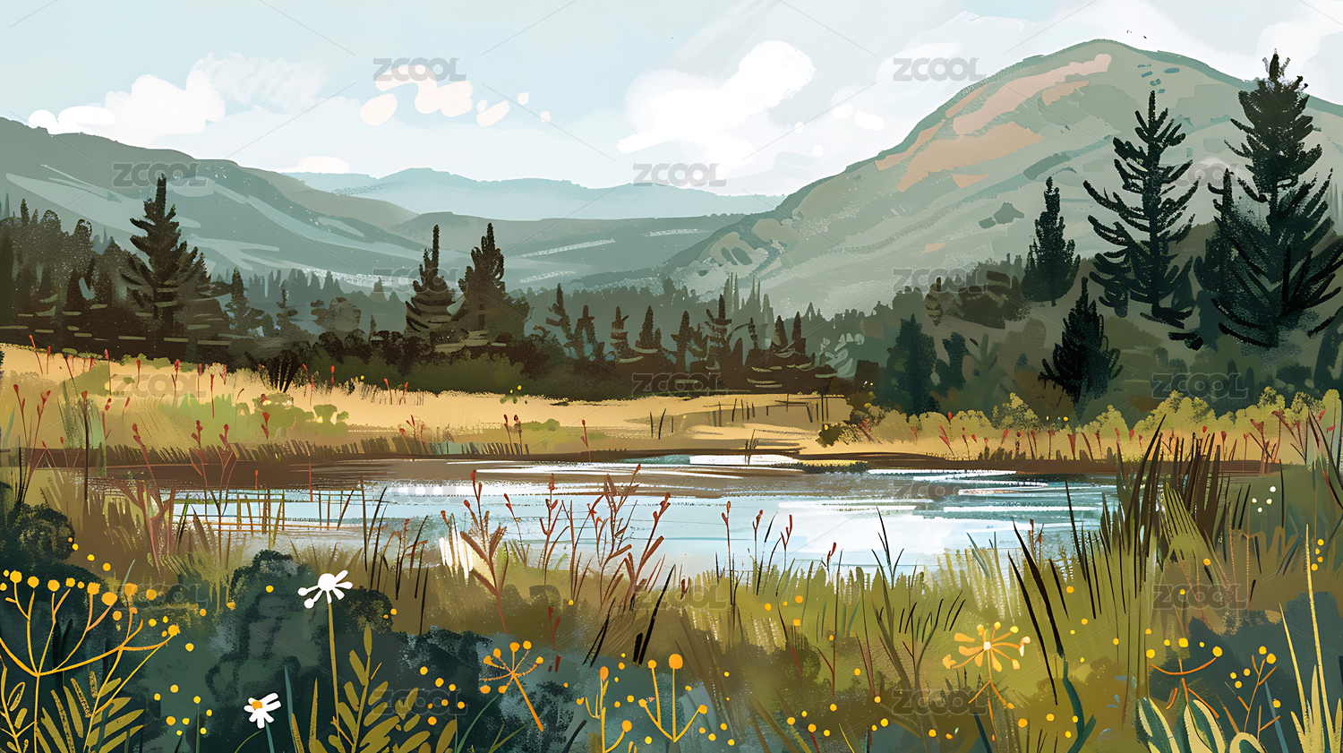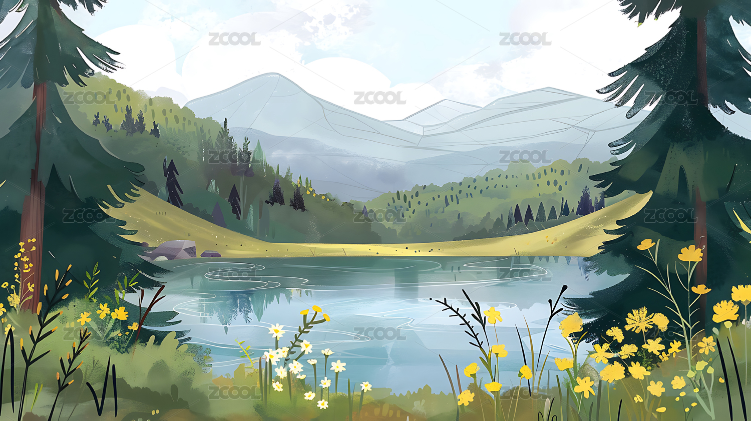 插画,节气,自然,春天,夏天,树木,风景,手绘,季节,立春