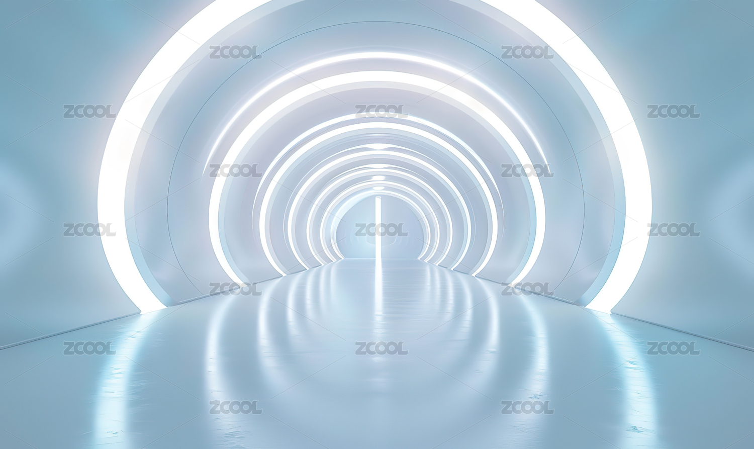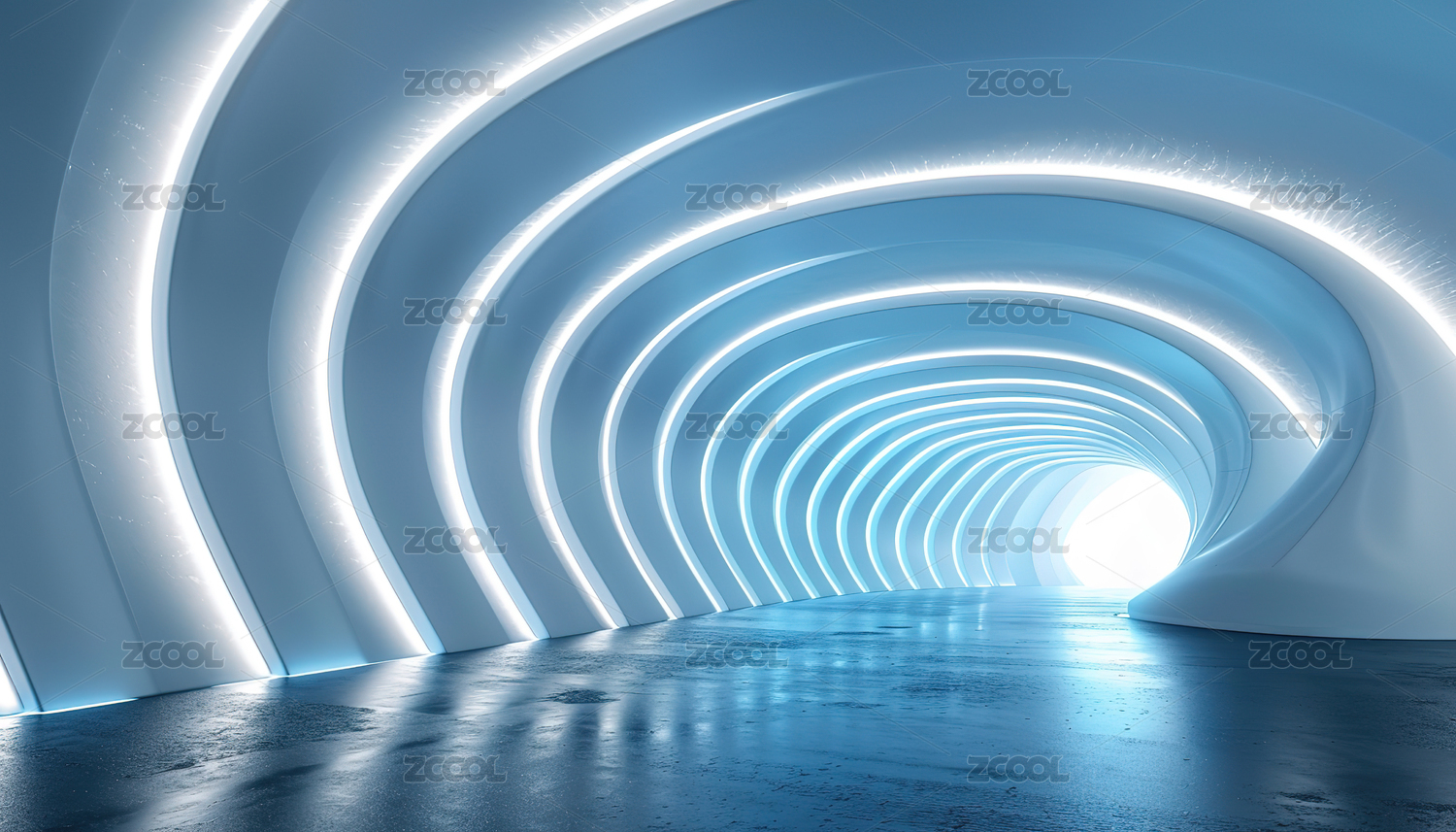 蓝色拱形发光隧道