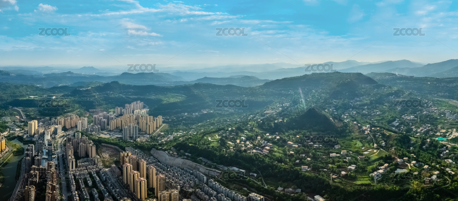 南方丘陵连绵群山与邕江航拍全景风光长图
