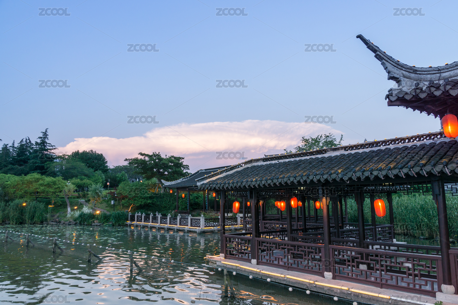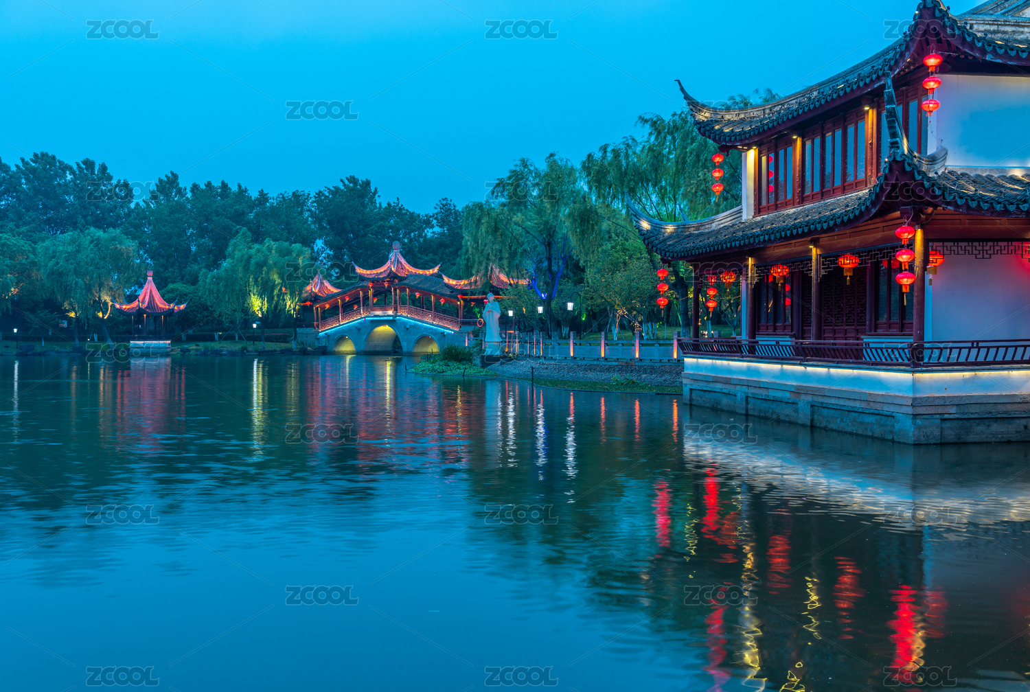 中国江苏扬州瘦西湖风景区凫庄夜景风光