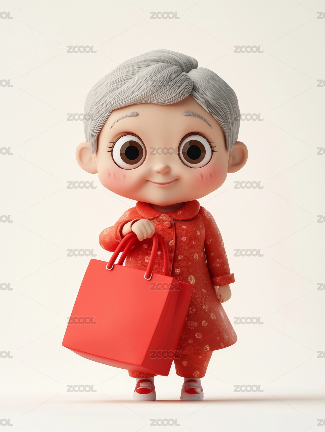 老年人,购物,白色,背景,红色,购物袋,AIGC202406,老年,生活,节日