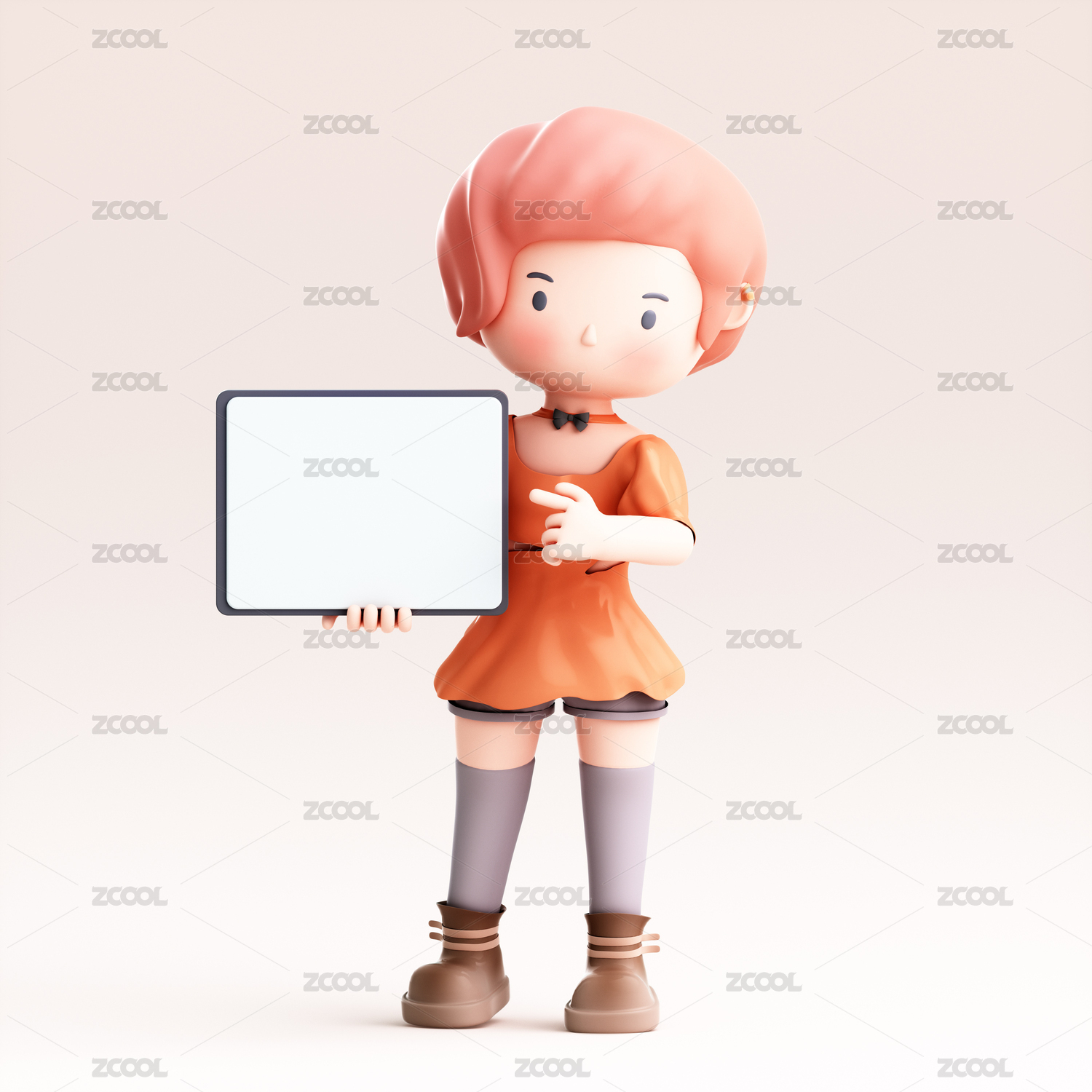 3D渲染的可爱卡通女孩