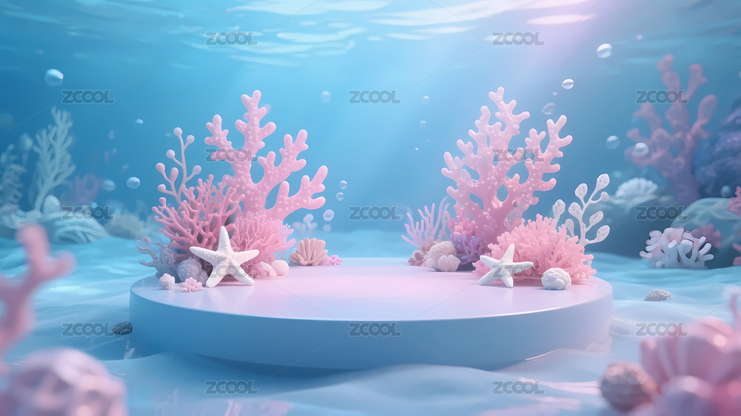 海洋主题圆形电商产品展台3D场景