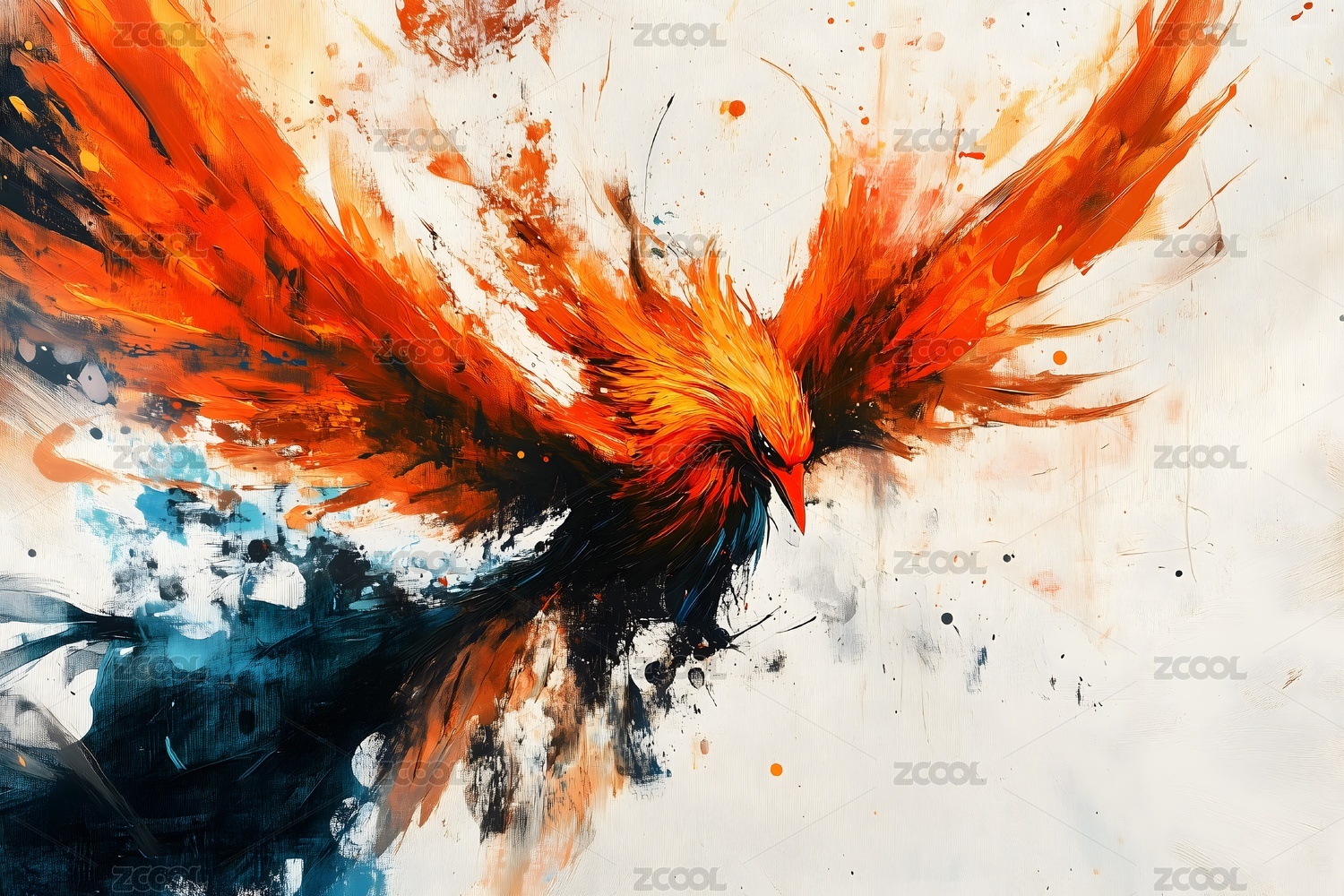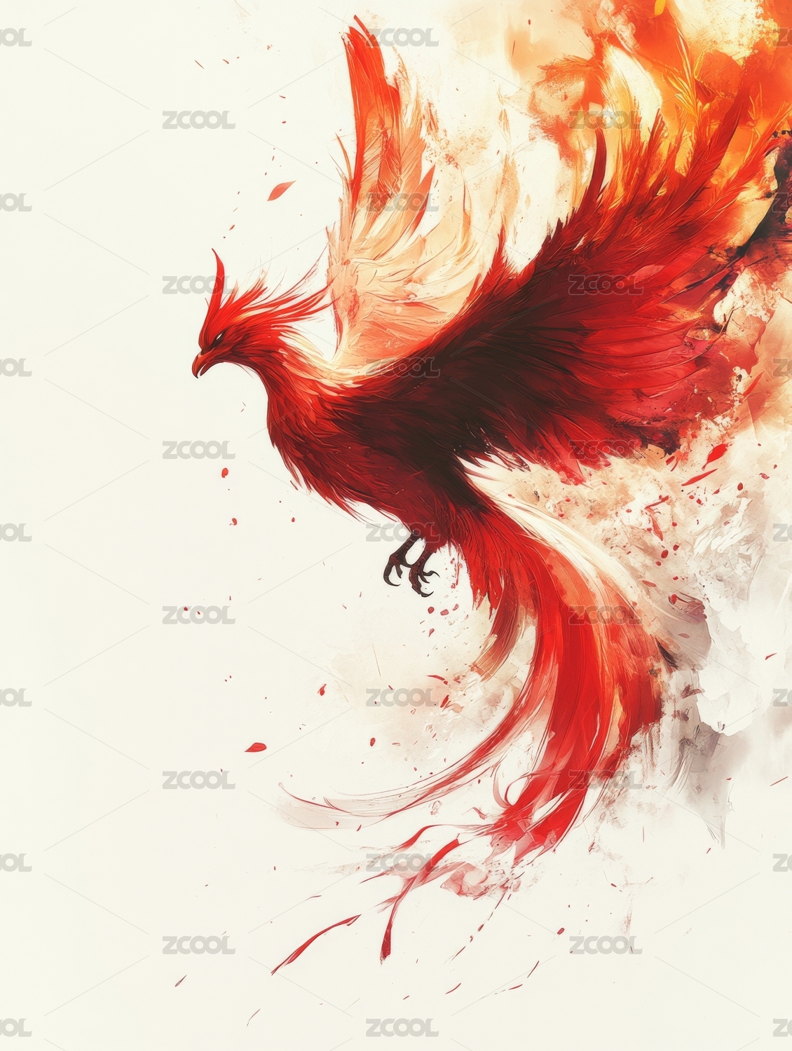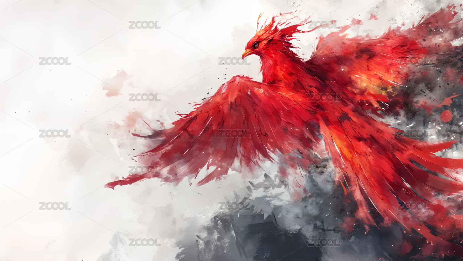 神话故事中的神兽朱雀水彩画