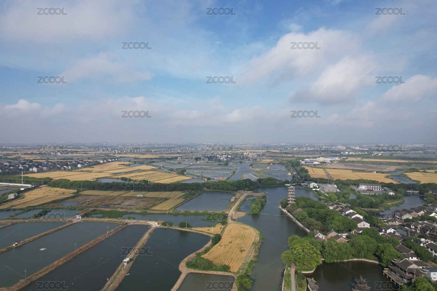 丰收在望的水乡麦田