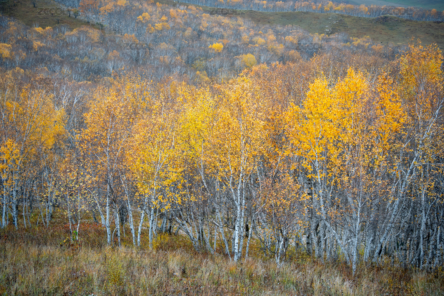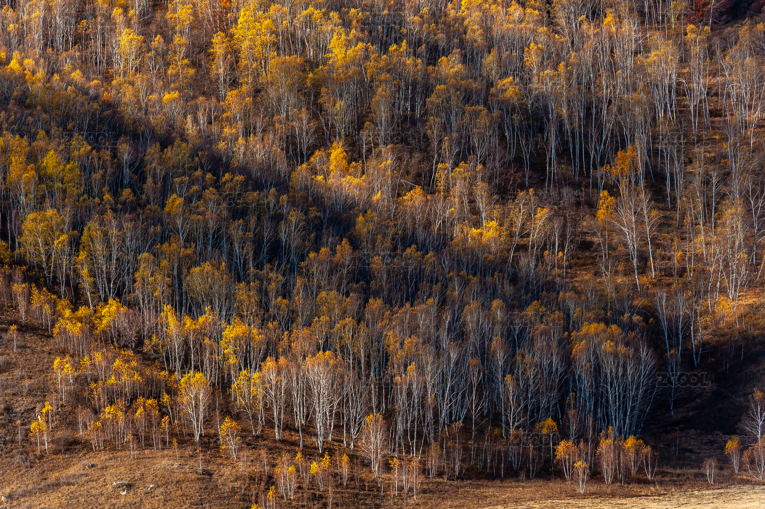 秋天金色的白桦林