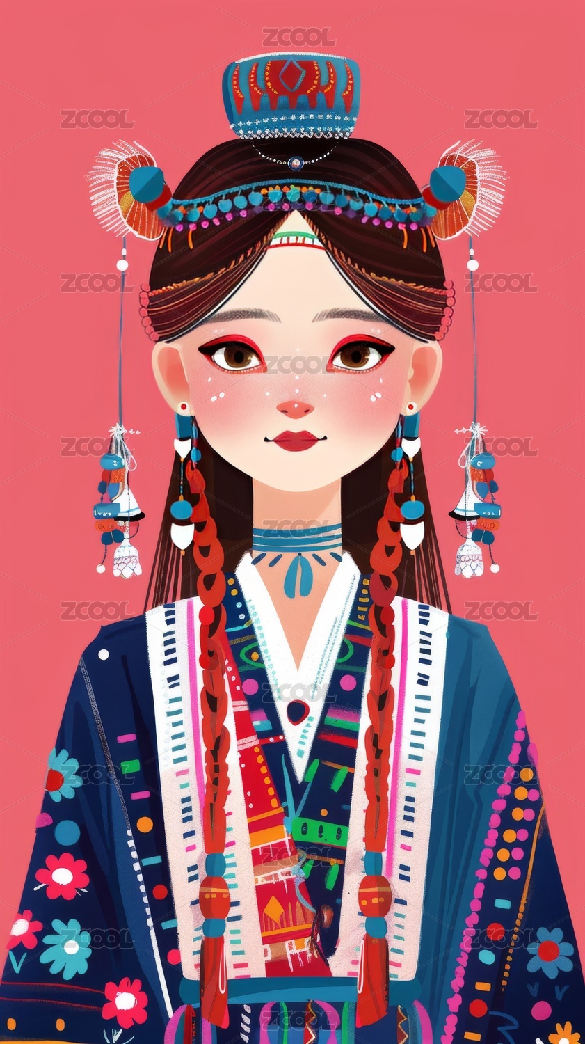 女孩,半身,竖构图,藏族,天珠,珍珠,民族风,复古