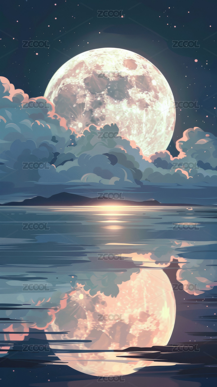 中秋水彩月夜宁静社交媒体壁纸节日营销海报