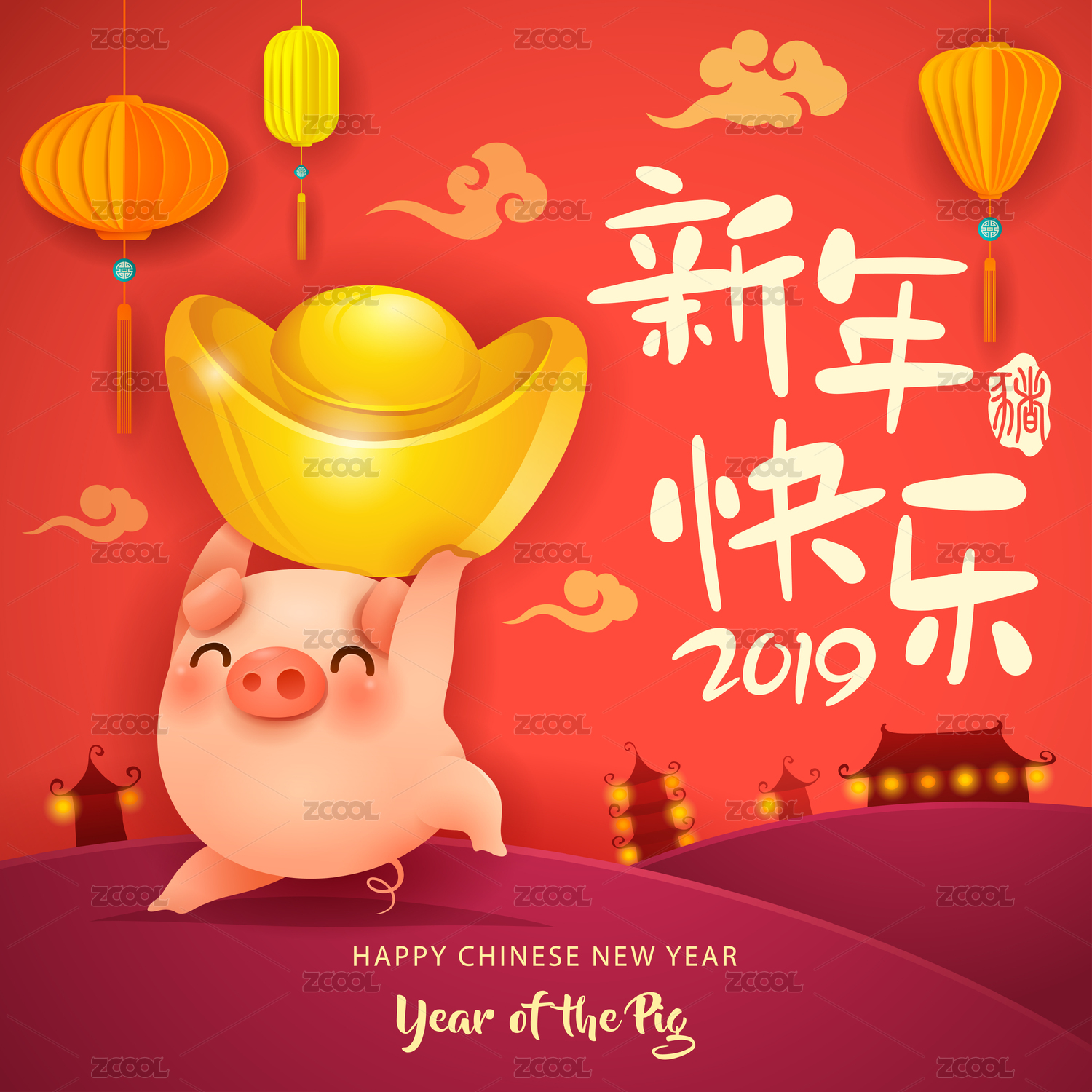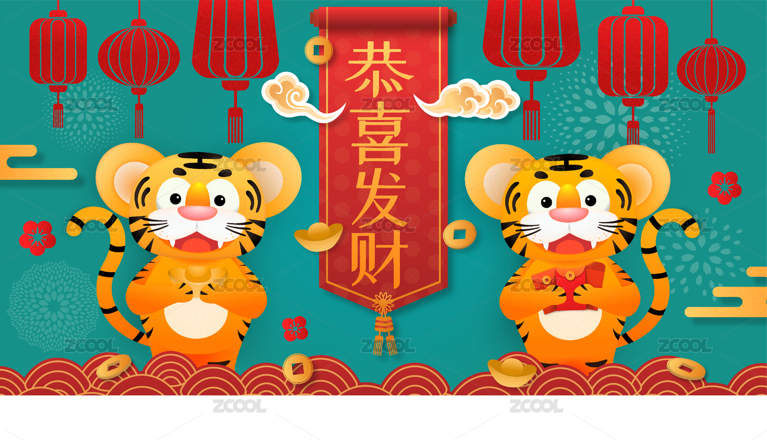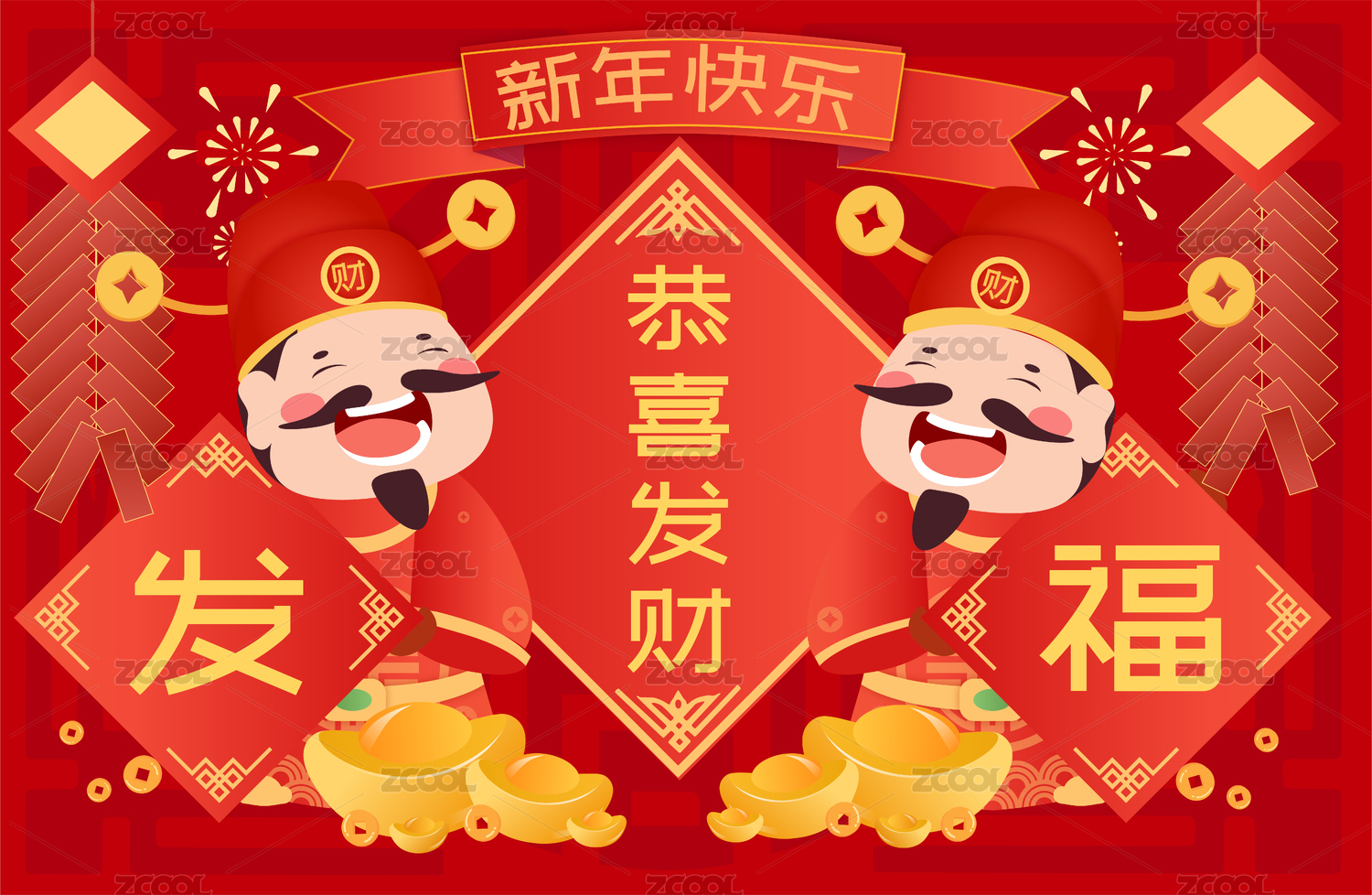 2020鼠年春节新年快乐喜庆红色可爱卡通老鼠恭喜发财拜年横版