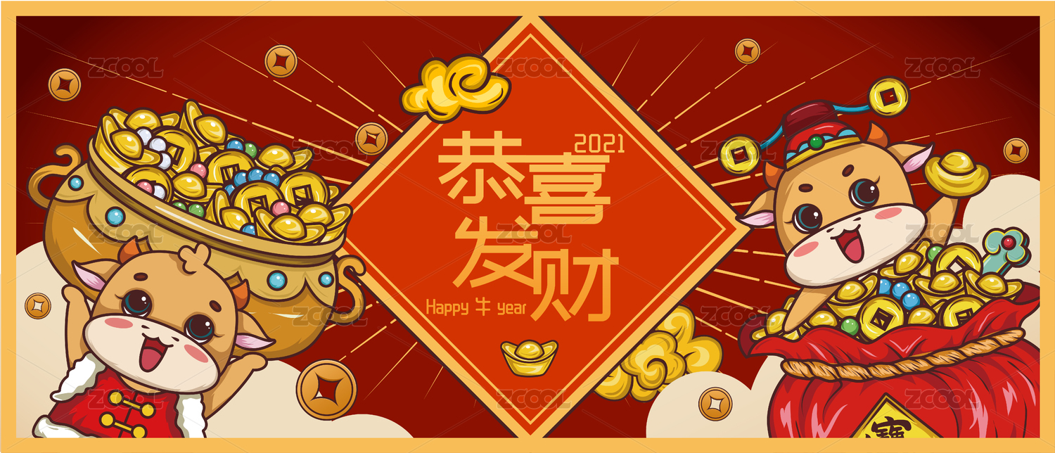春节,牛,金牛,3D,三维,雄壮,豪华,金元宝,大红包,农历
