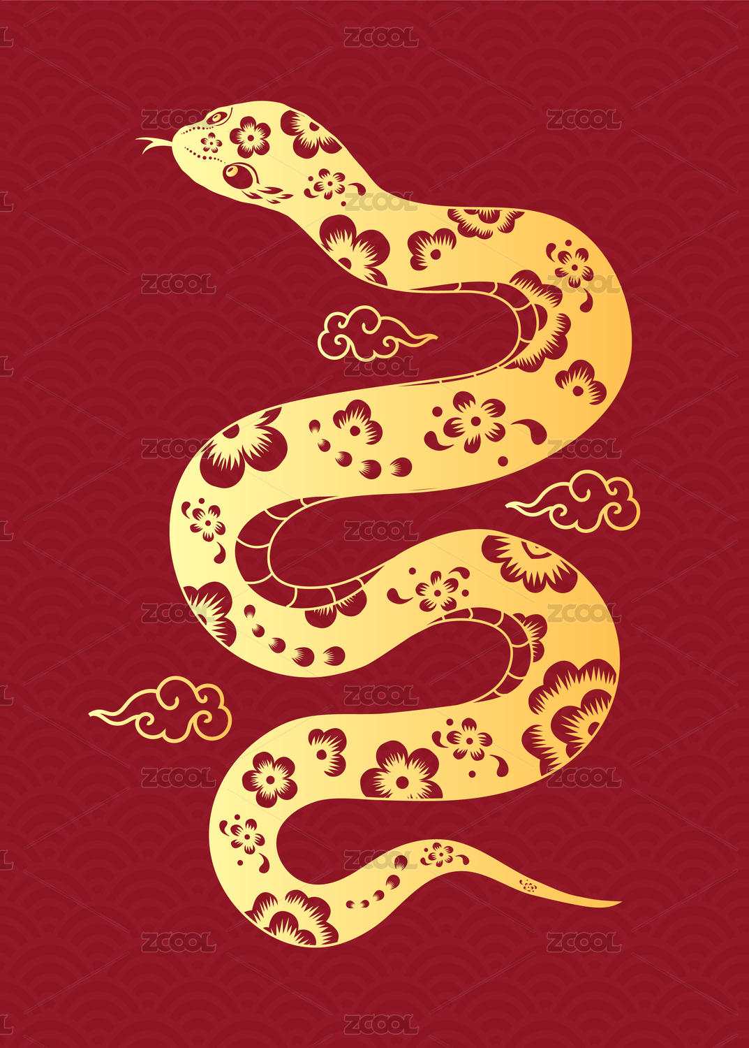 蛇年主题插画艺术剪纸图案logo徽章标志