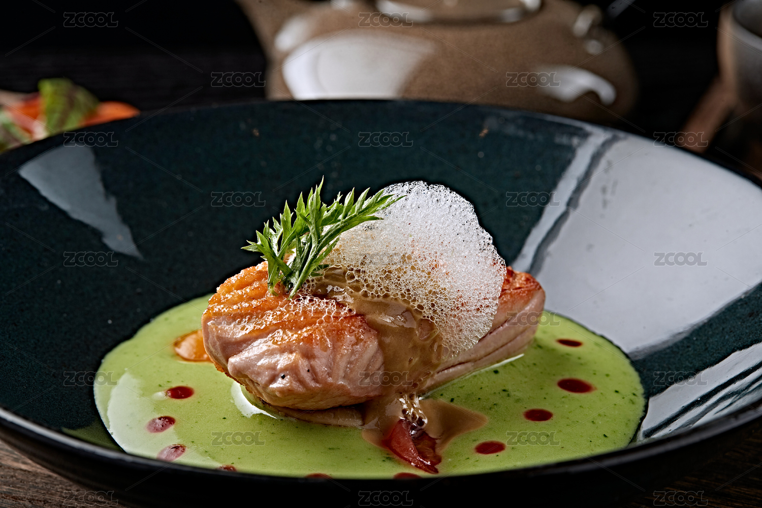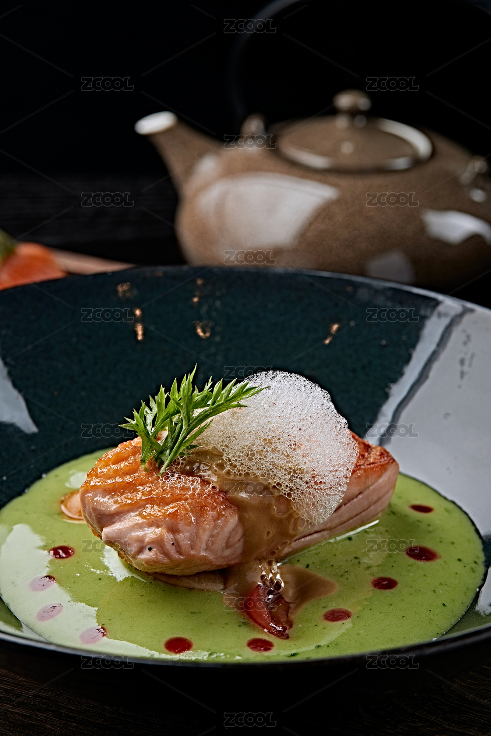 分子美食铁板三文鱼肉