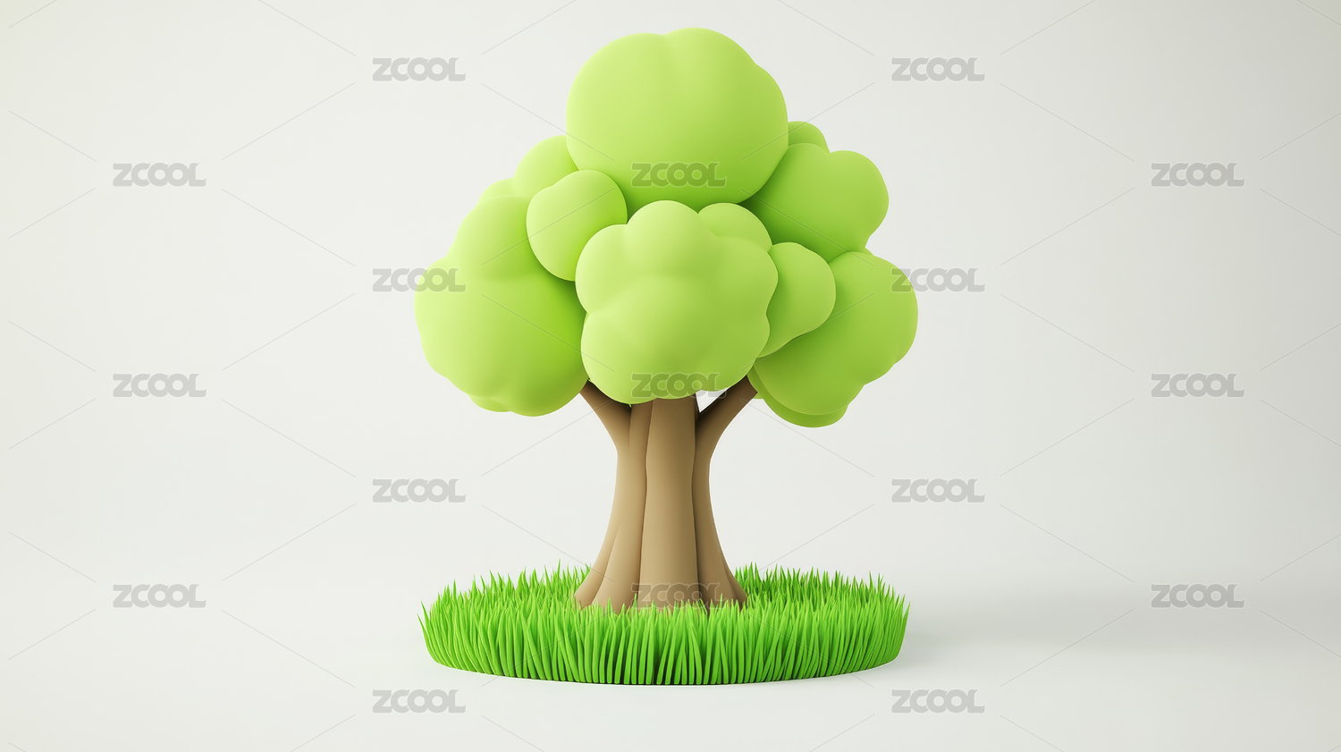 可爱治愈一棵充气圆球叶子的树3D卡通插画