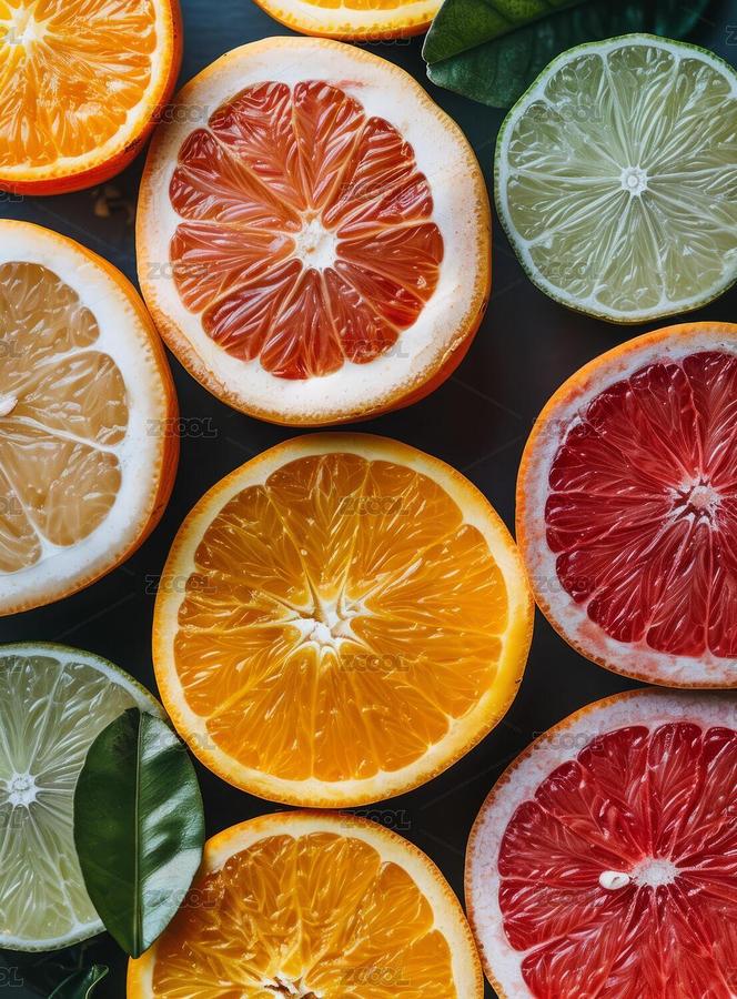 各色柑橘切片