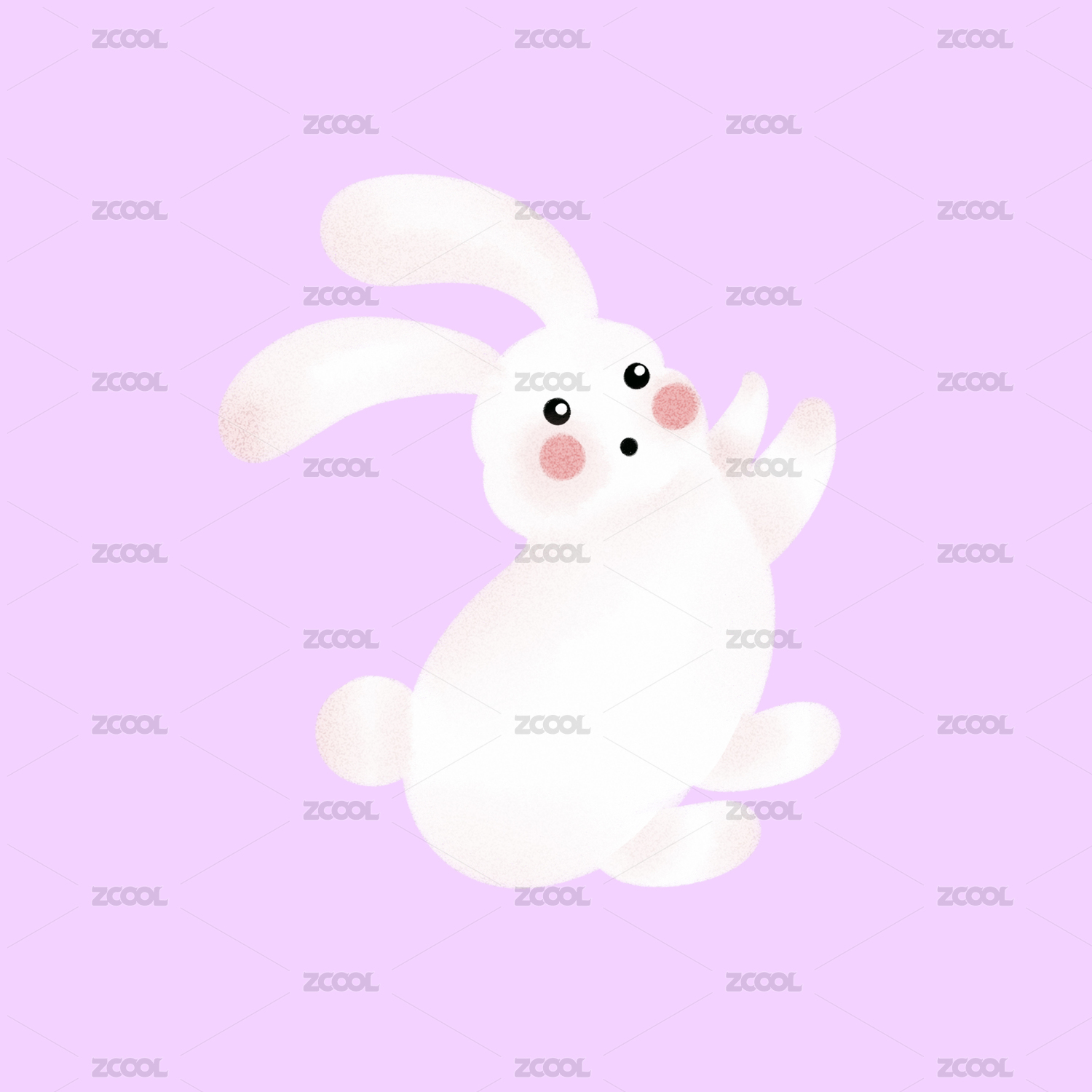 兔子,白兔,动物,插画,图案,红色,2023,洋红色,印花,手绘