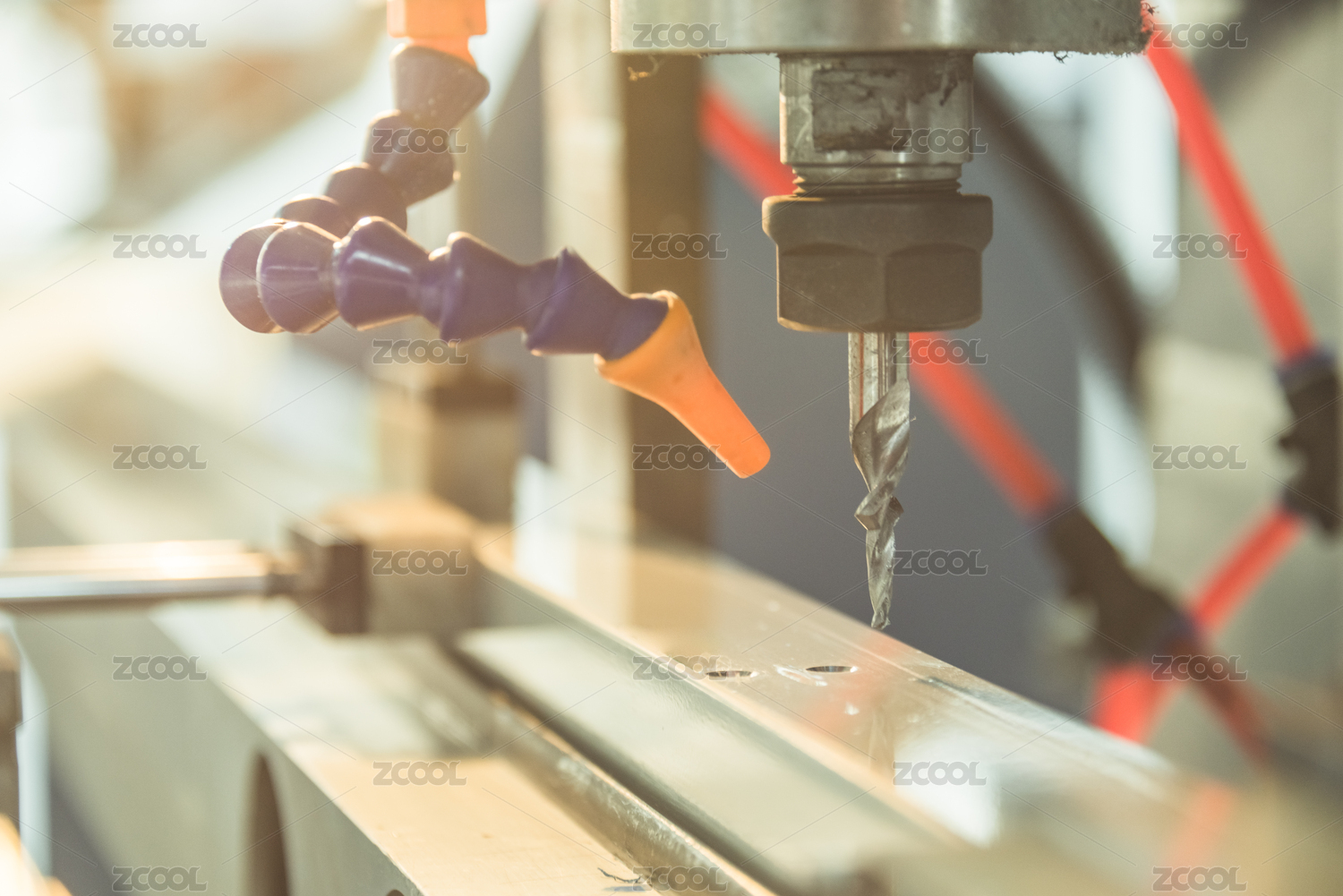 在工厂冷却管钻探机械的特写镜头,模糊背景。