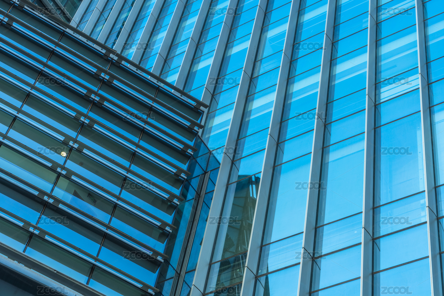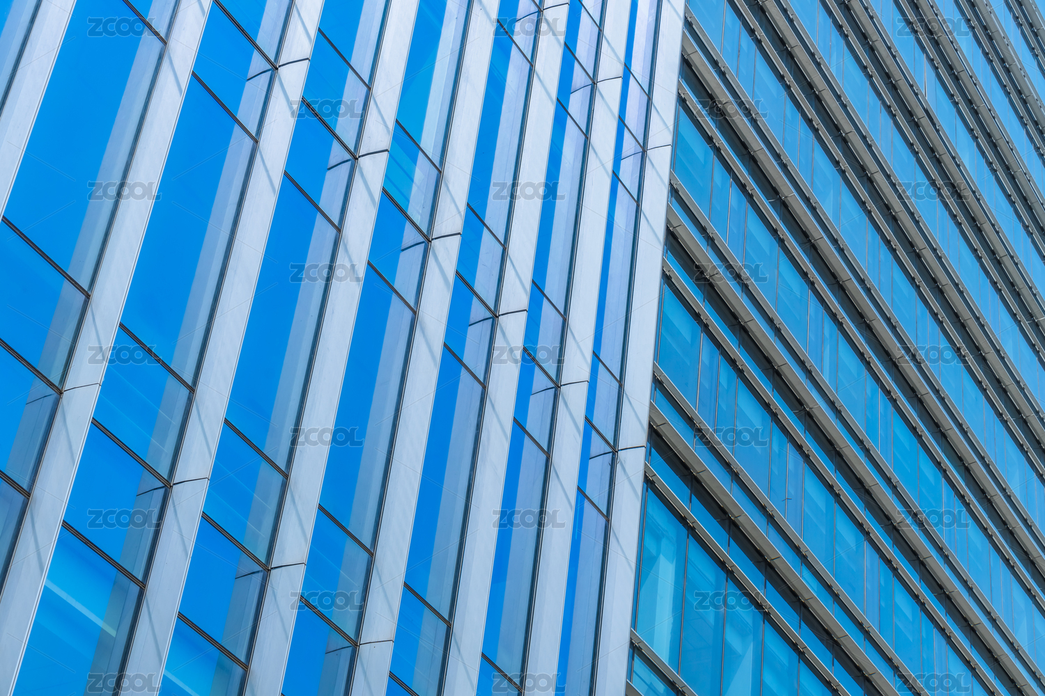 抽象的建筑摩天大楼的蓝色玻璃墙