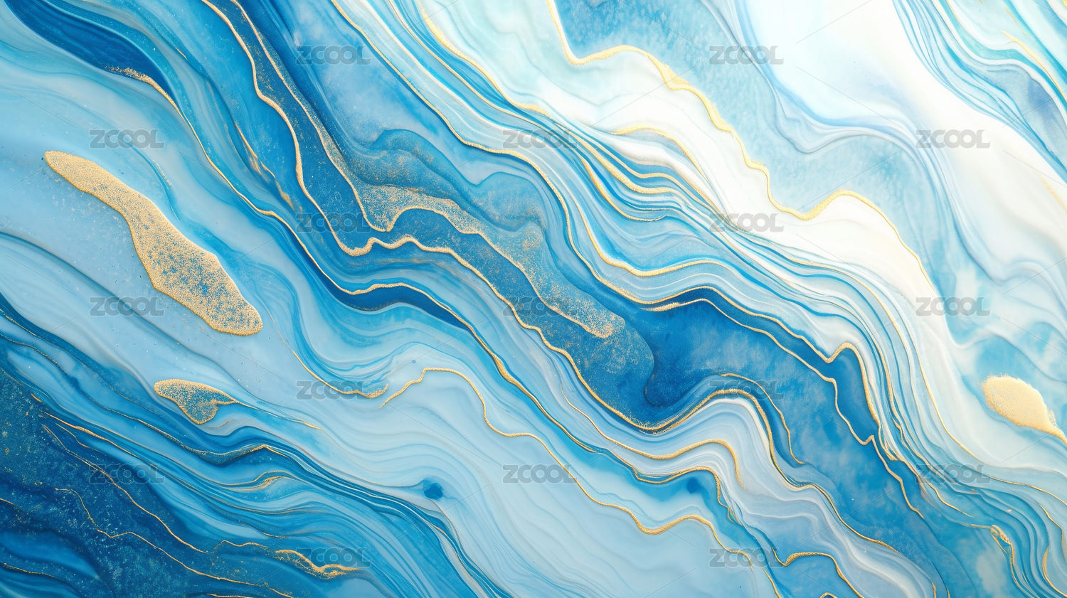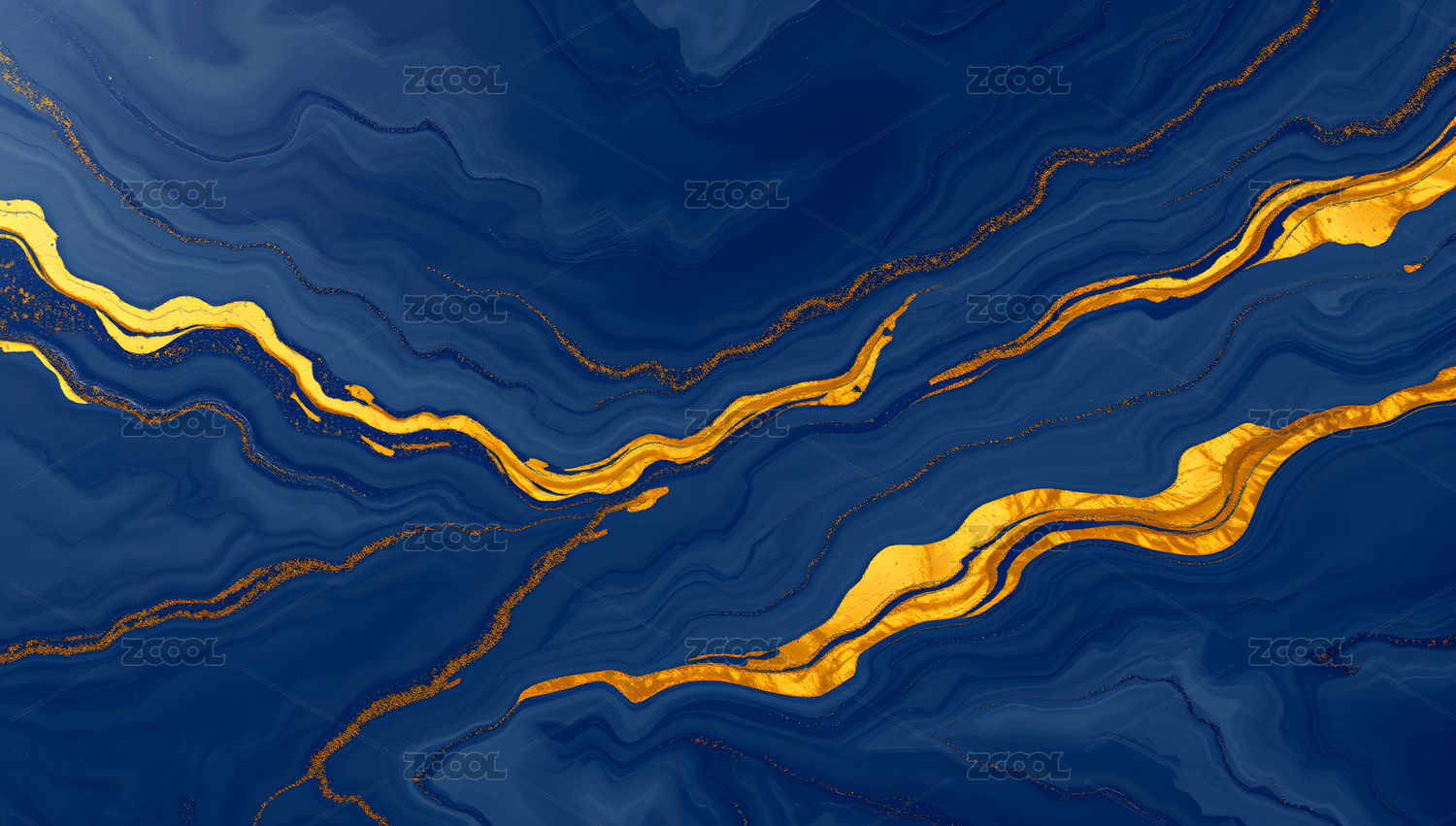 蓝色大理石纹理与金色线条背景
