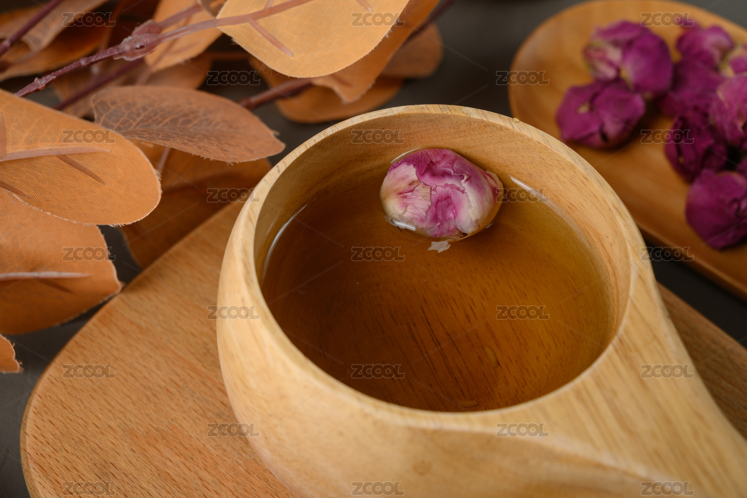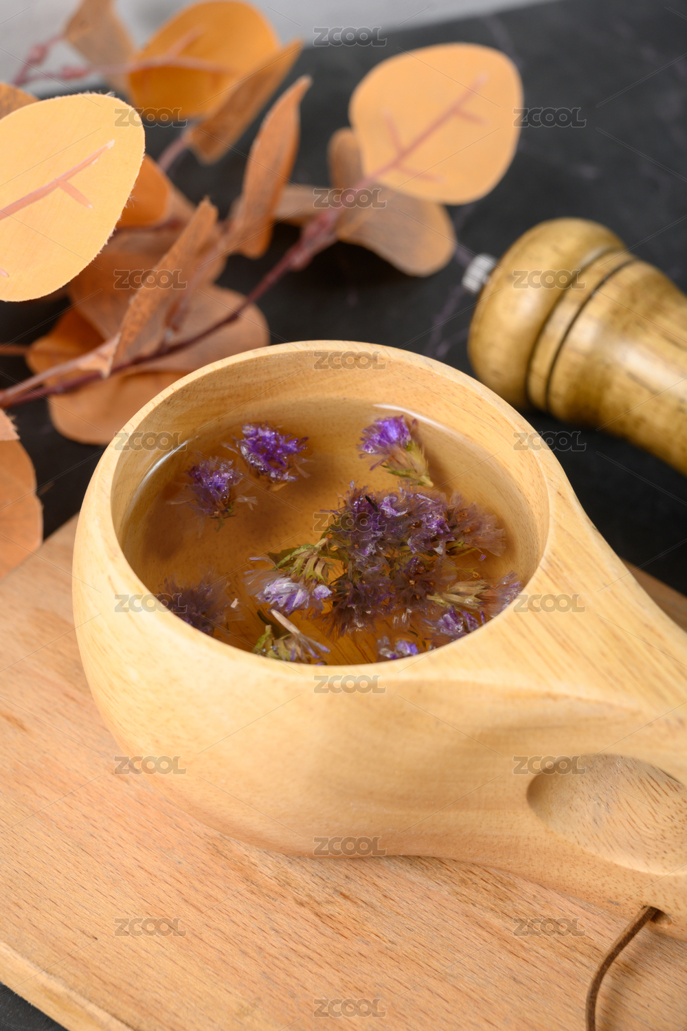 桌面上的杯子里的香甜可口的牡丹花苞茶