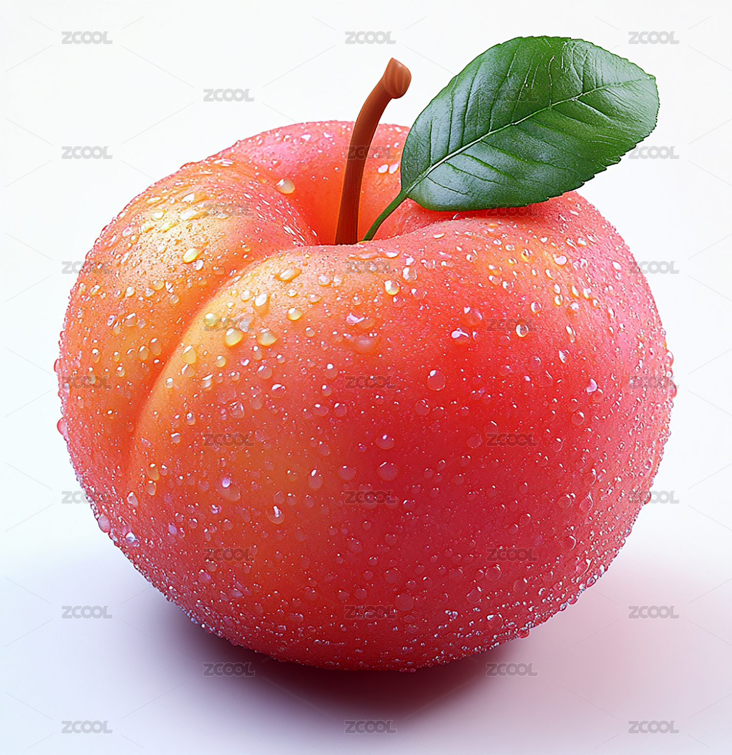 水蜜桃,桃子,粉色,叶子,绿色,可爱,卡通,三维图形,3D,水果
