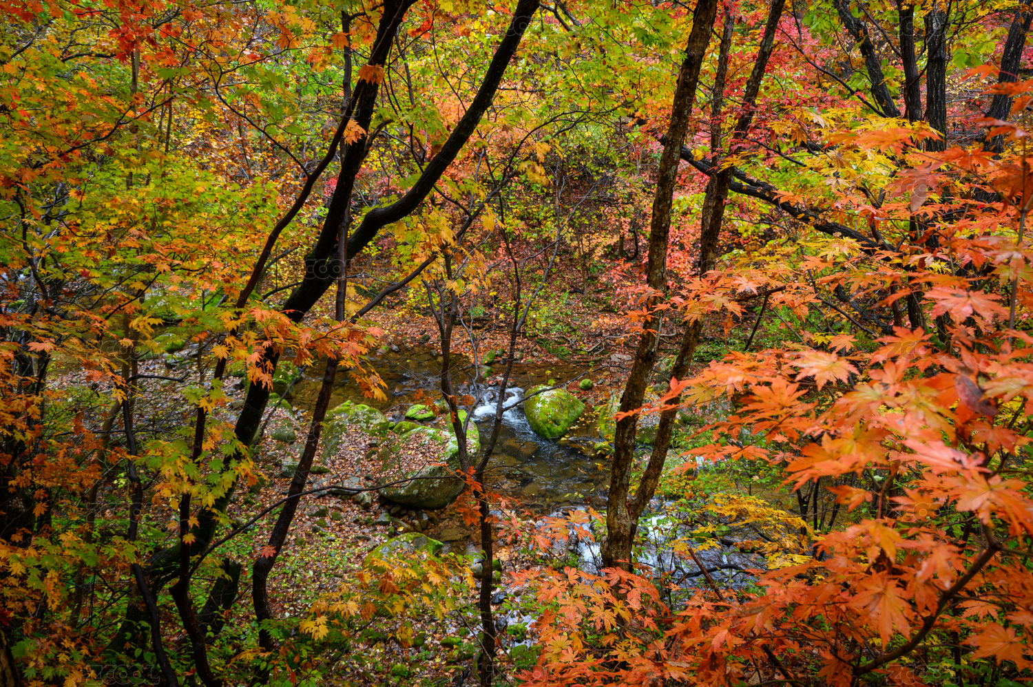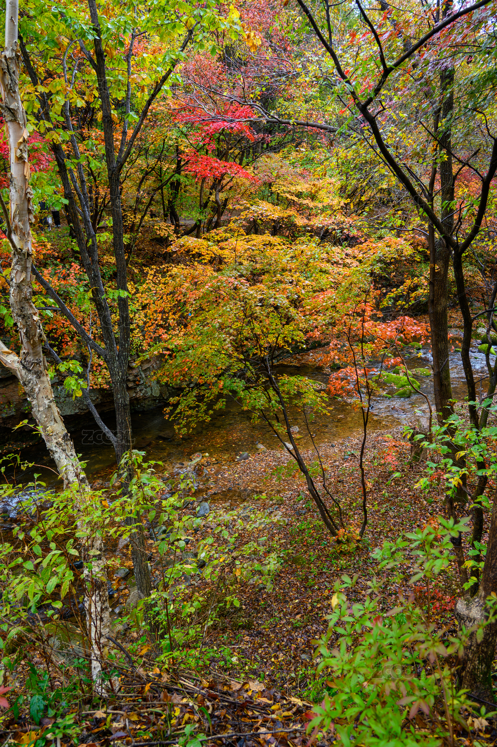 辽宁丹东蒲石河森林公园秋天的红叶谷