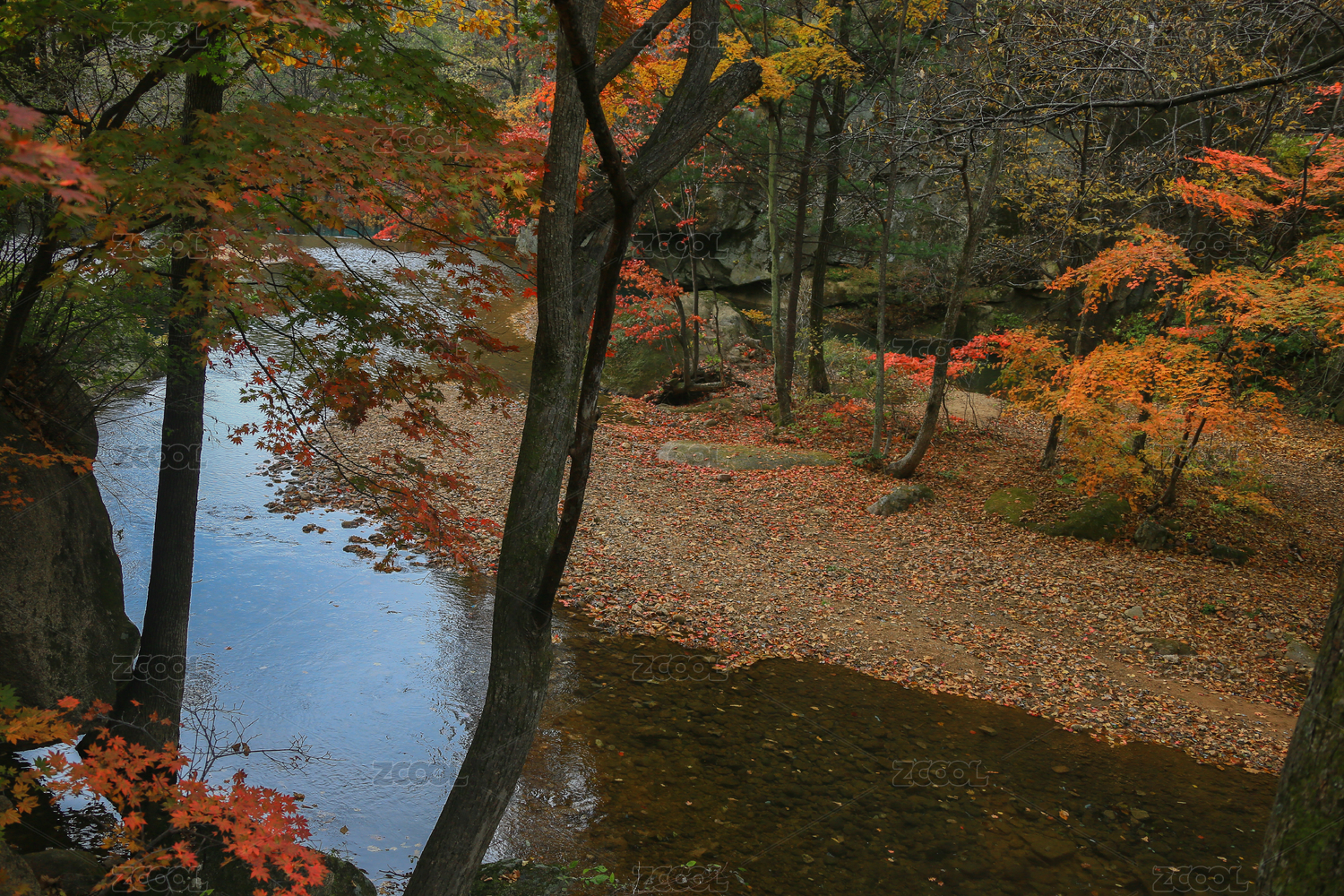 枫叶 枫树 小河 倒影 秋色