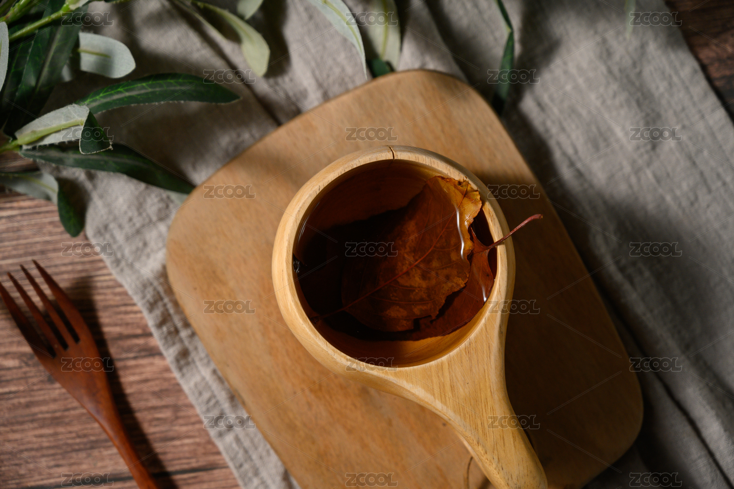 桌面上的盘子里的甘甜可口的山楂叶茶