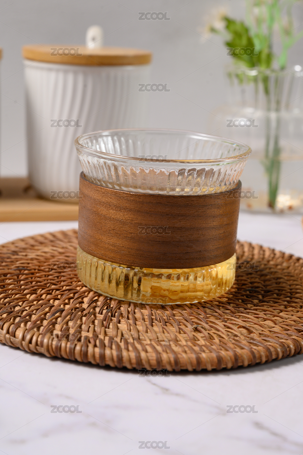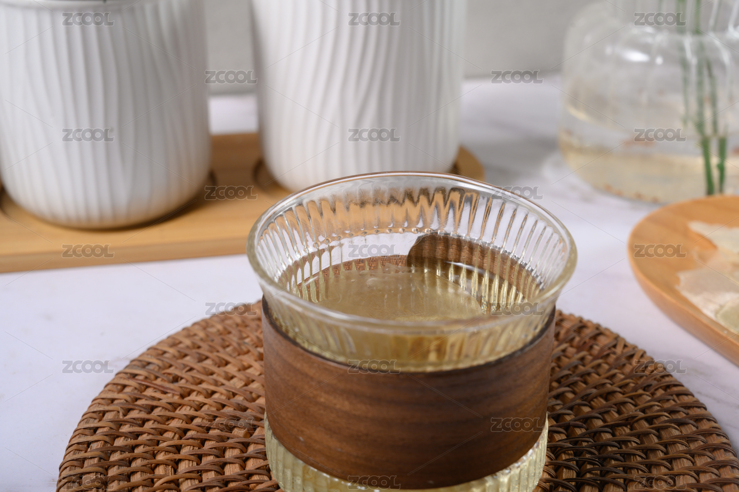 桌面上的杯子里的甘甜可口的玉兰花茶