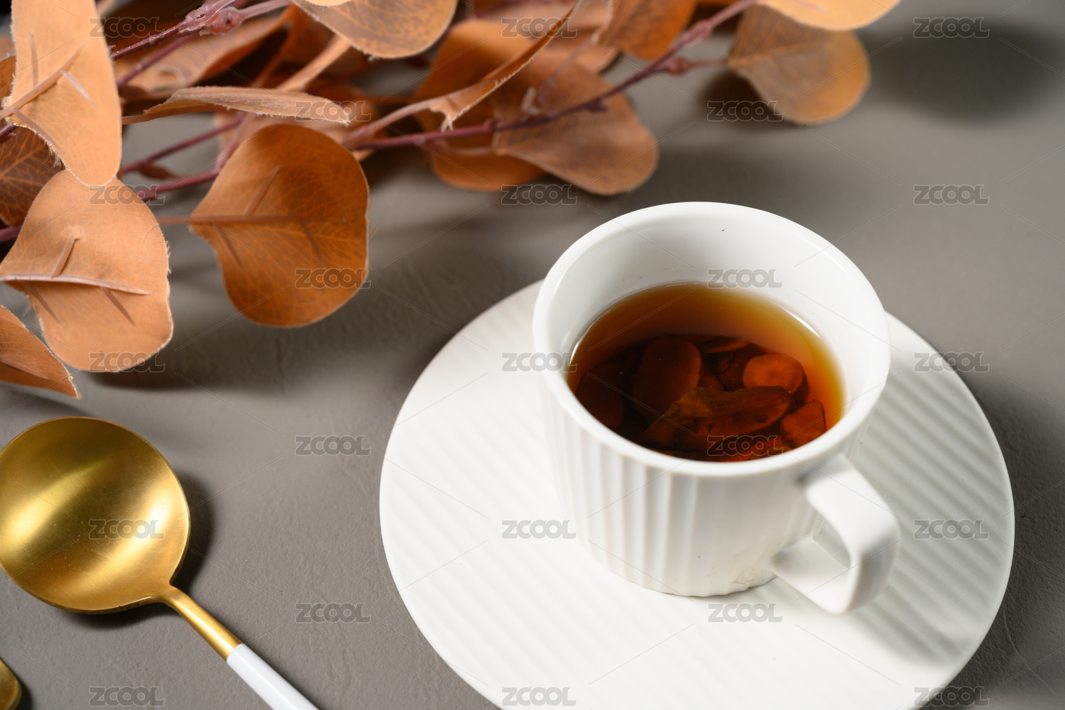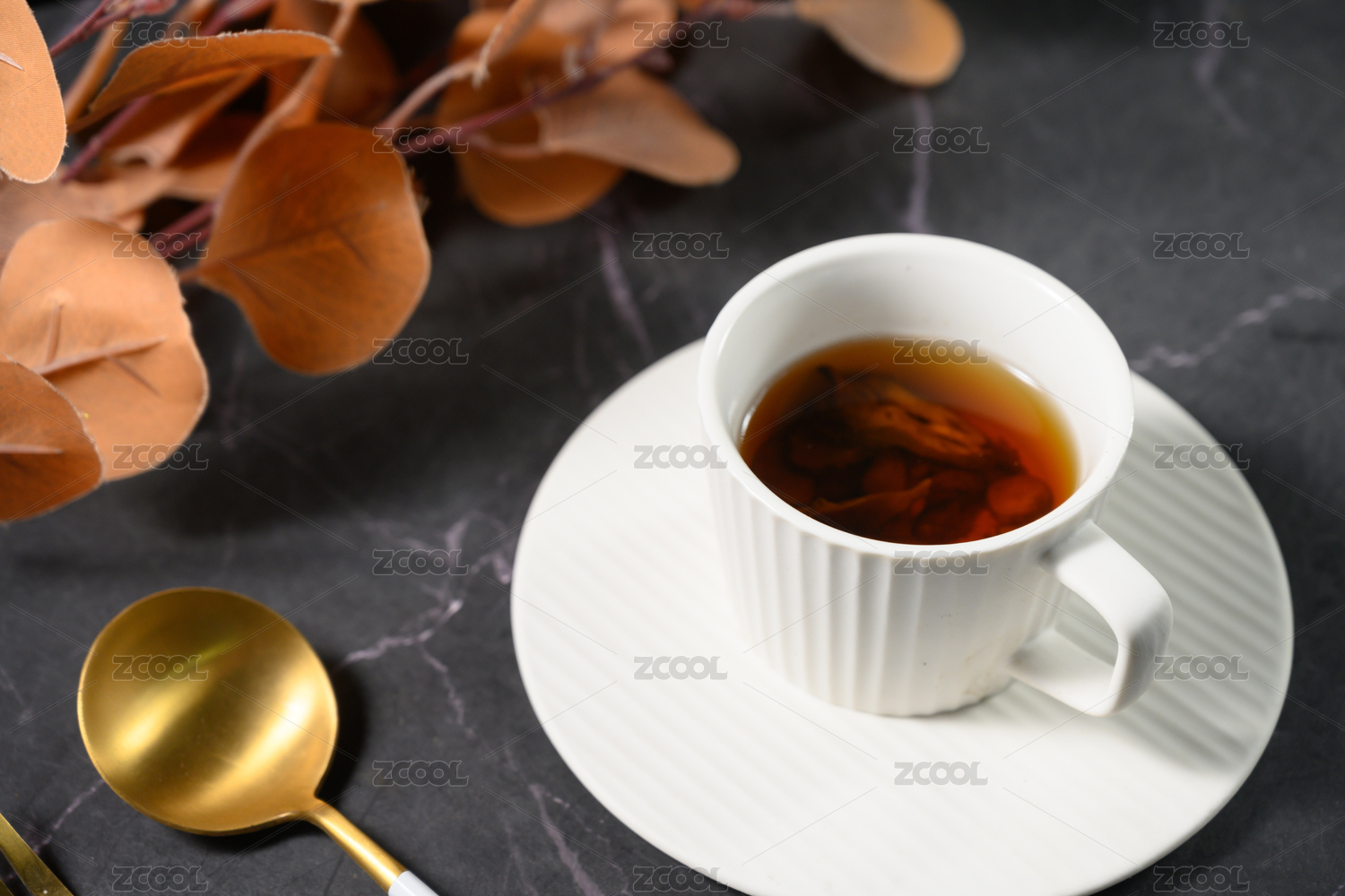 桌面上的杯子里的甘甜可口的胰岛果茶