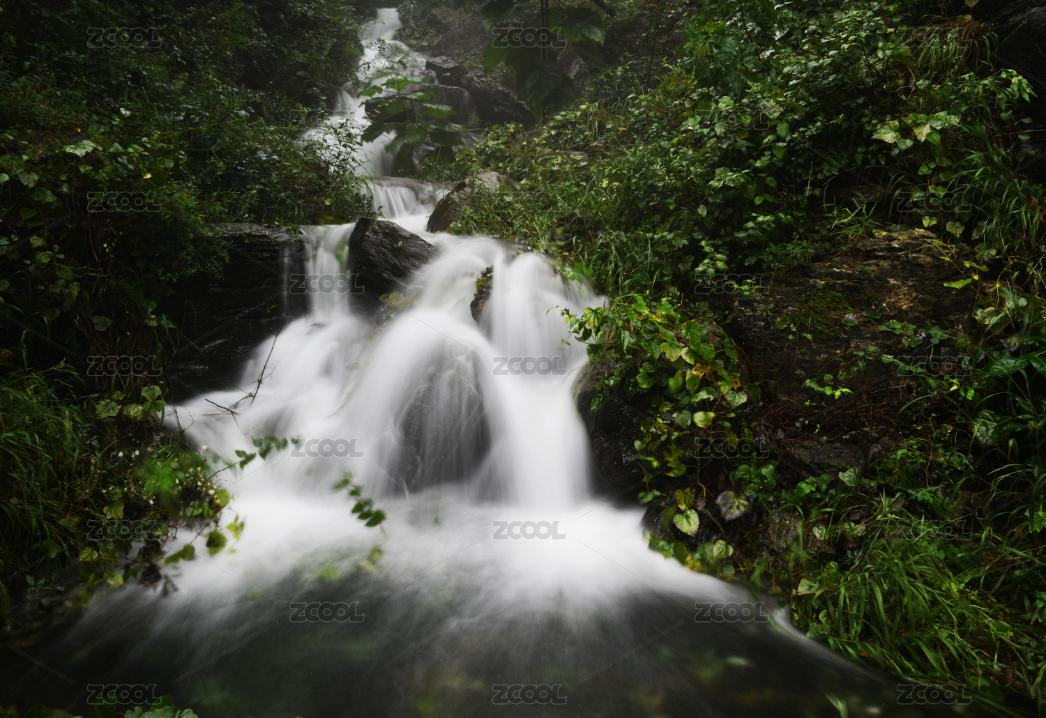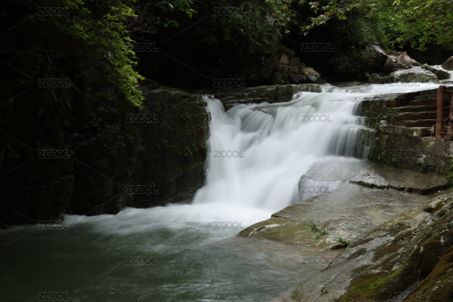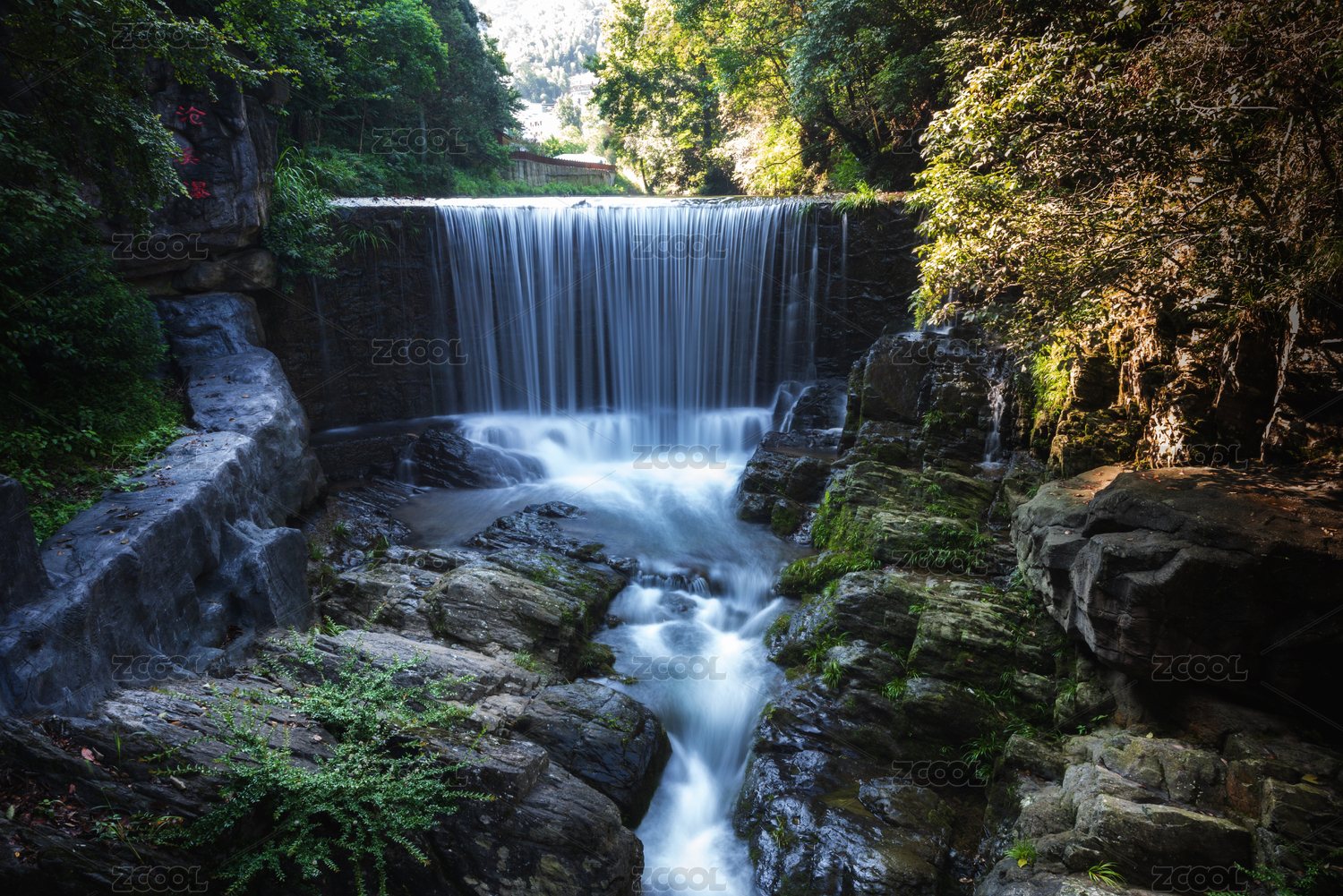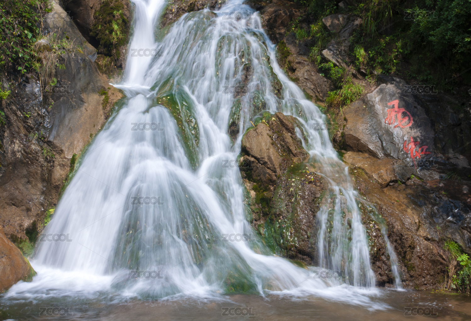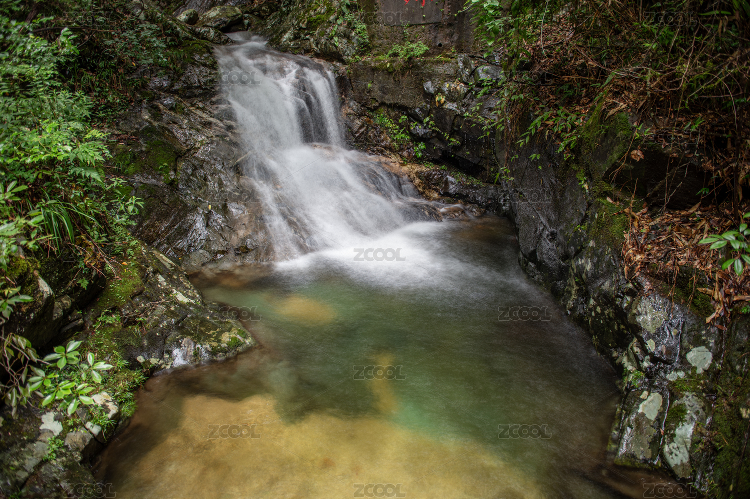 山区户外岩石上流淌的小瀑布,福建龙岩
