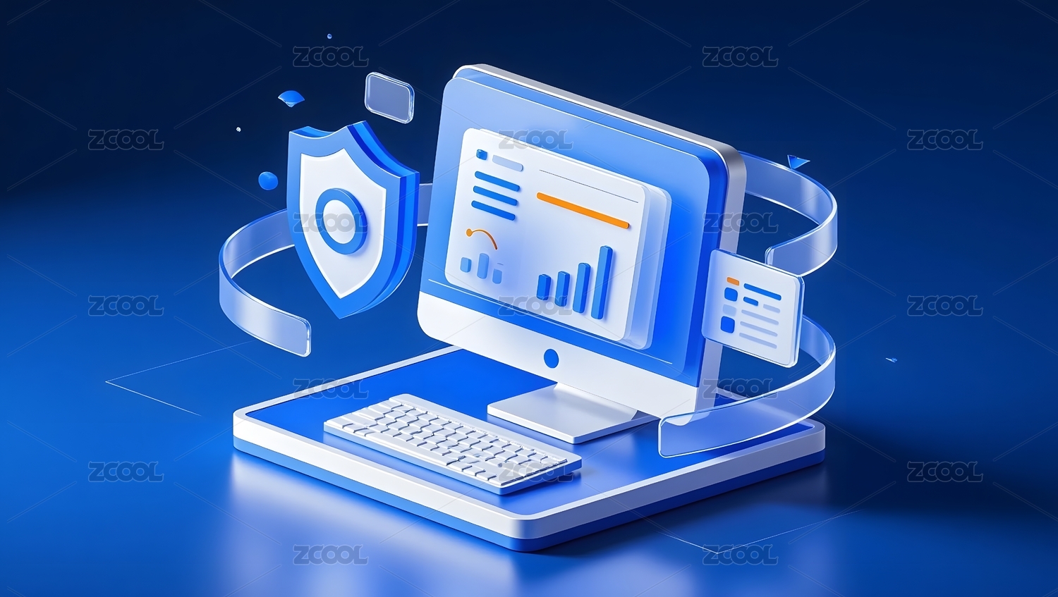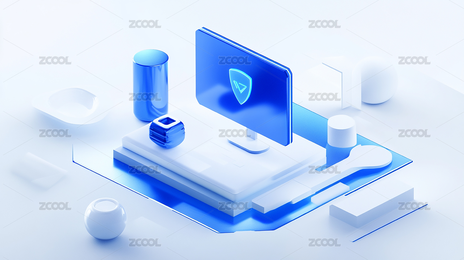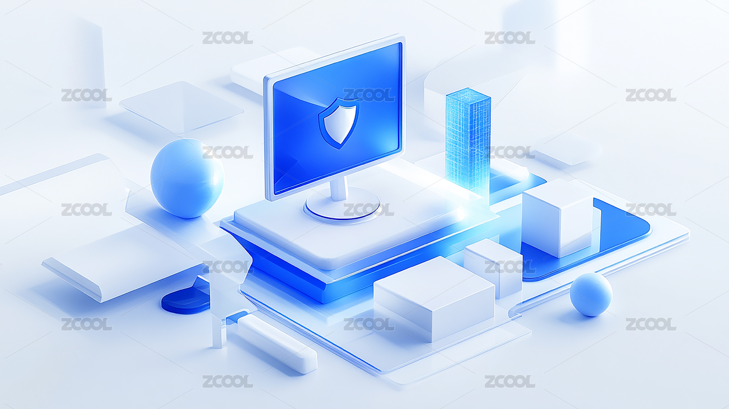 蓝色3D等距科技感插画