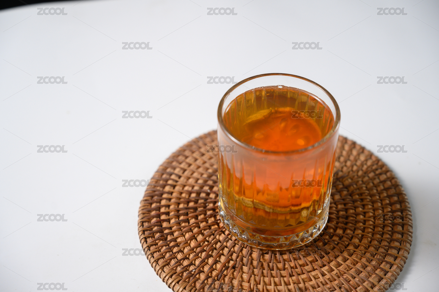 桌面上的杯子里的甘甜可口的陈皮白茶