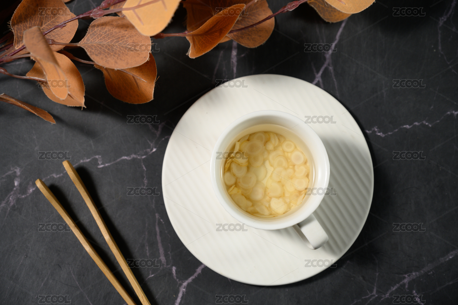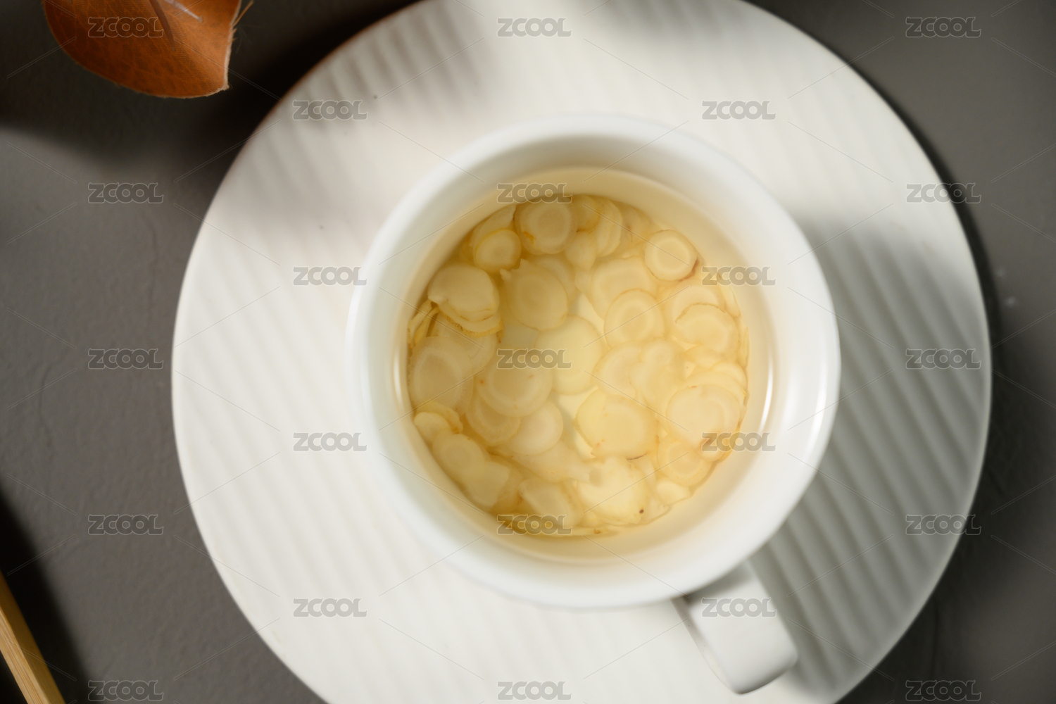 桌面上的杯子里的的甘甜可口的西洋参茶