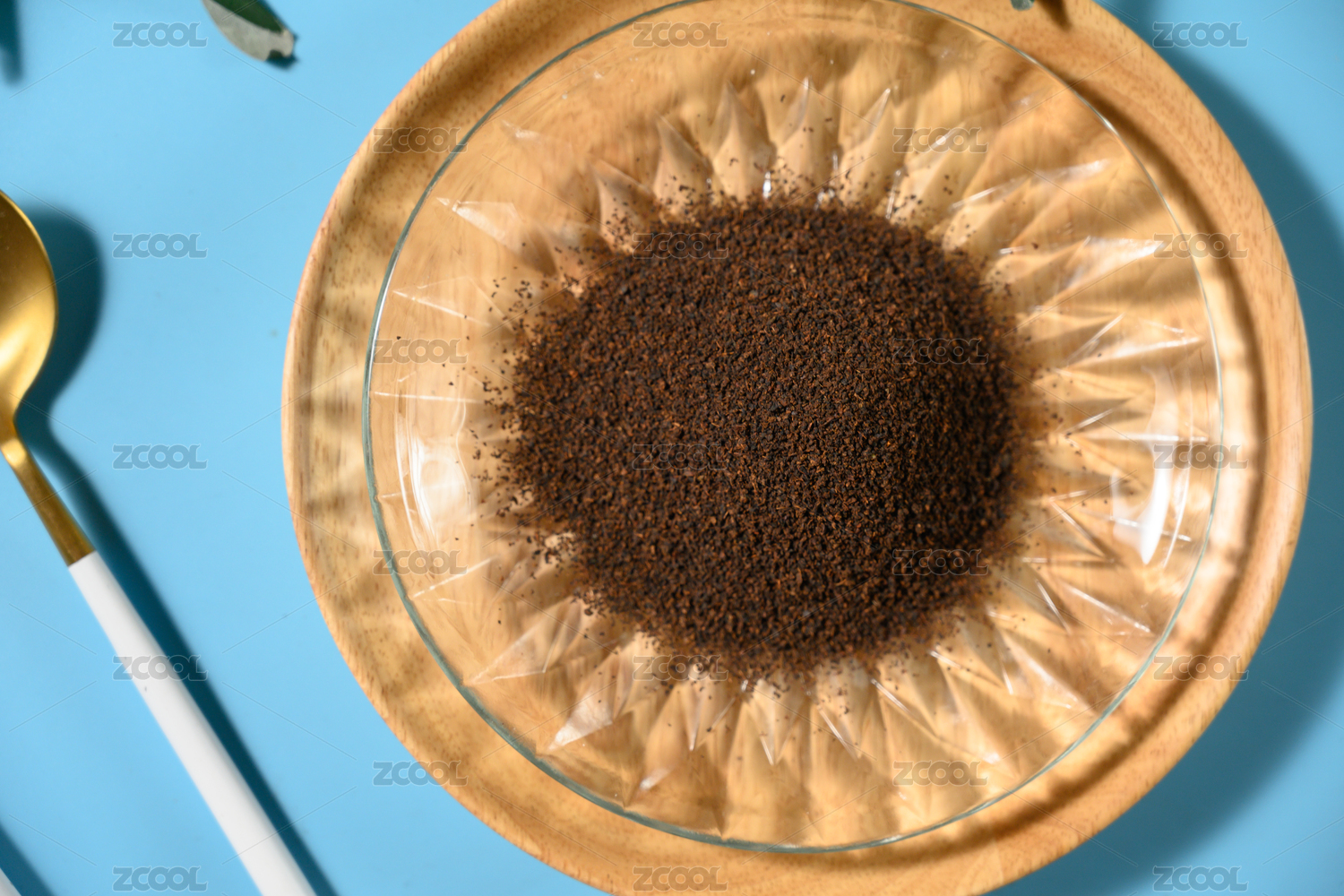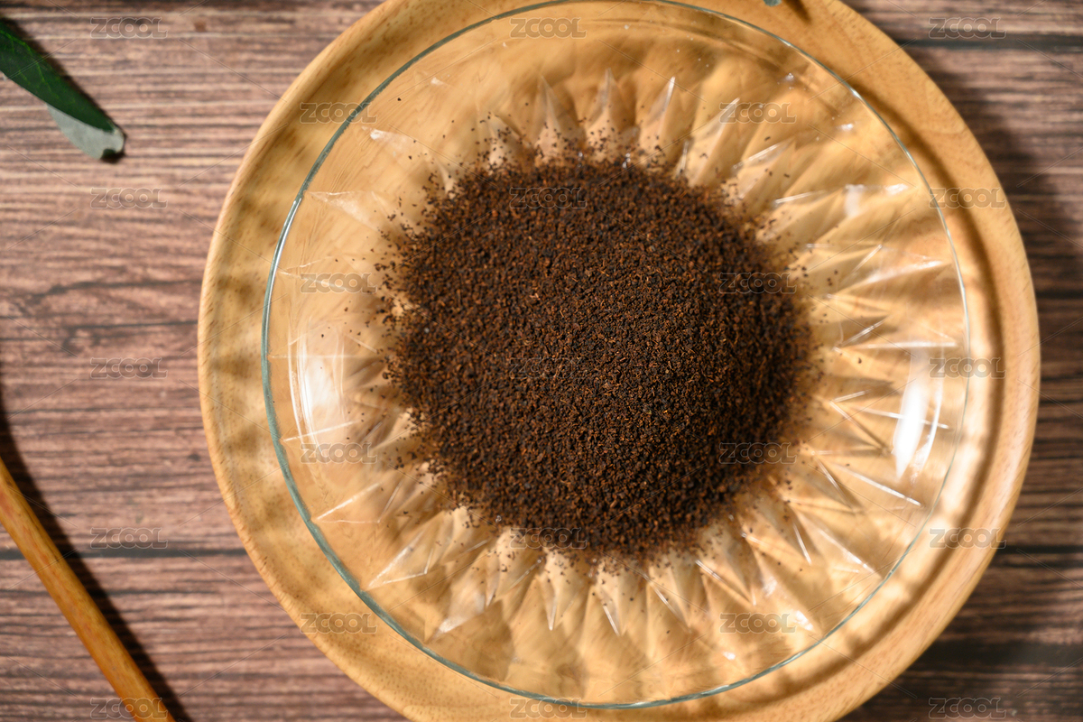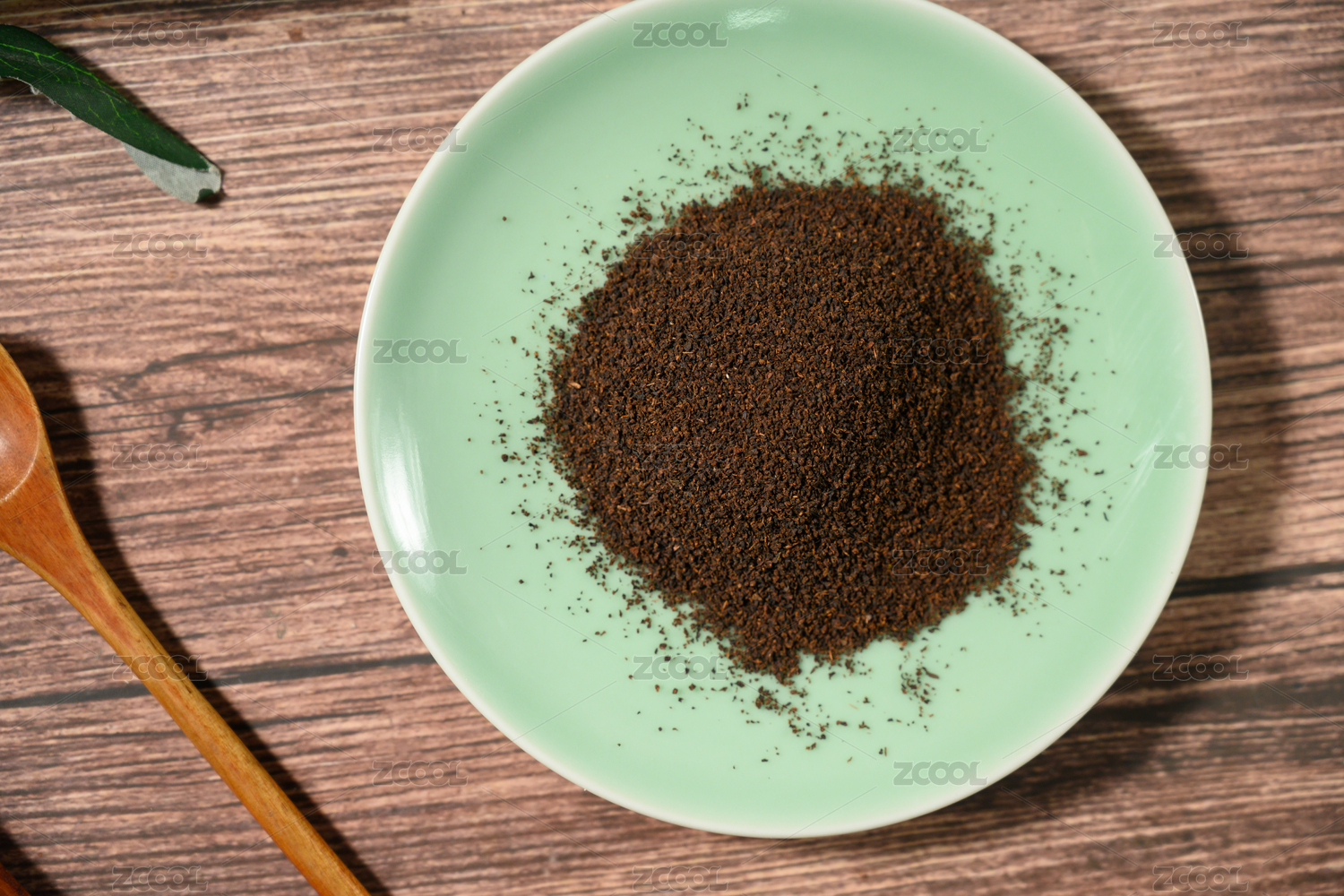 桌面上的盘子里的香气四溢的锡兰红茶茶叶粉