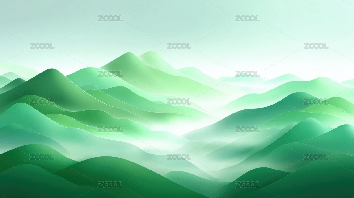 柔和绿色的山峦美景