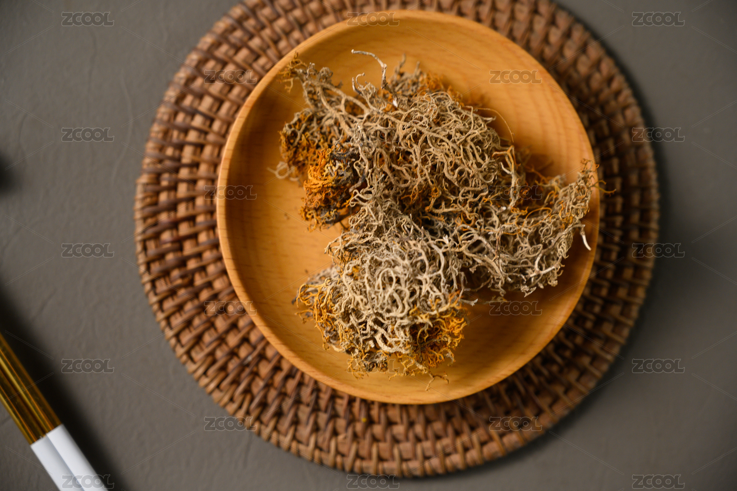 桌面上的盘子里的干爽的山蜜茶