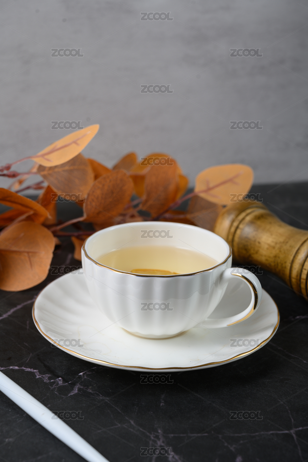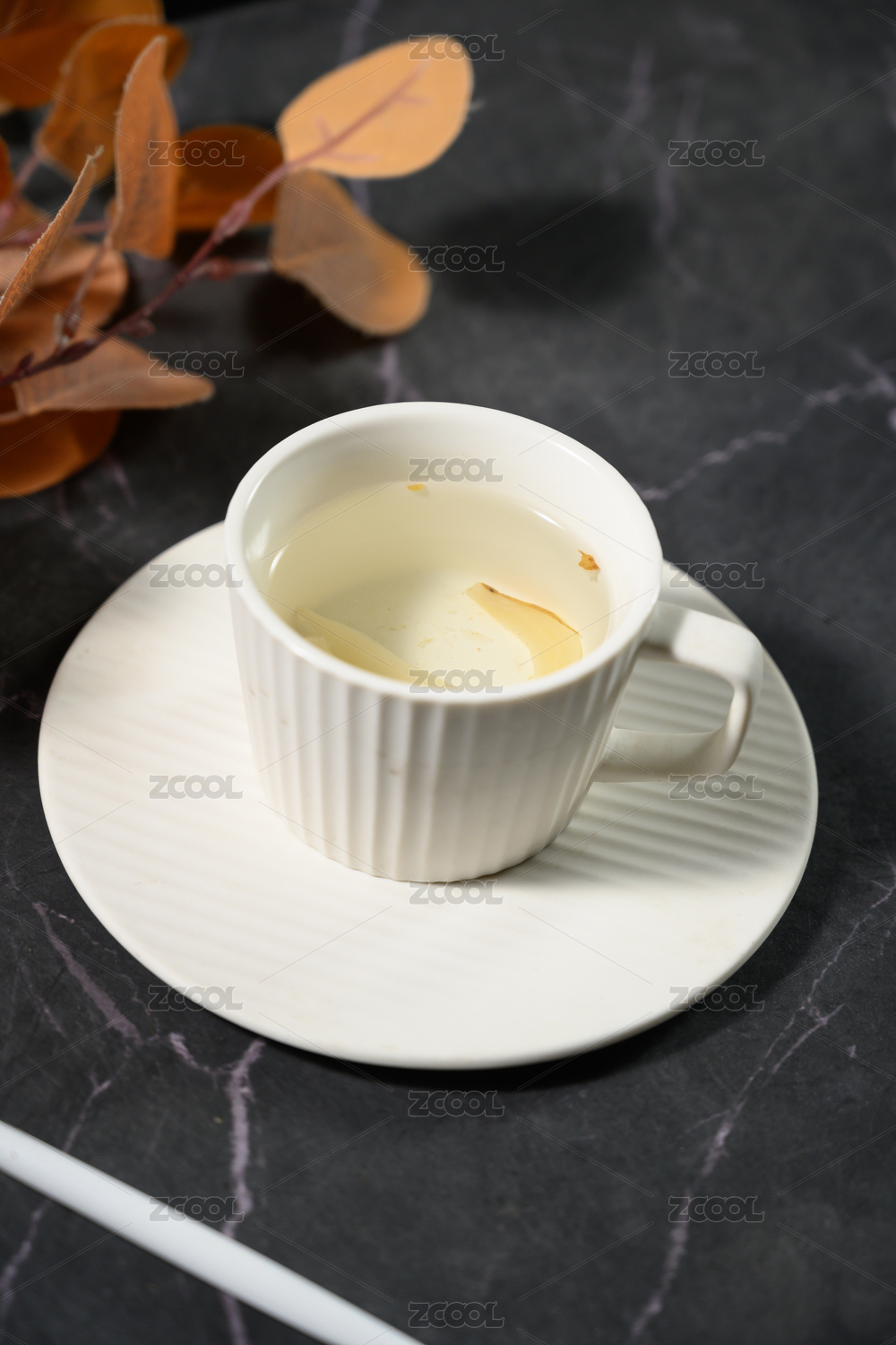 桌面上个的杯子里的甘甜可口的龙胆草茶