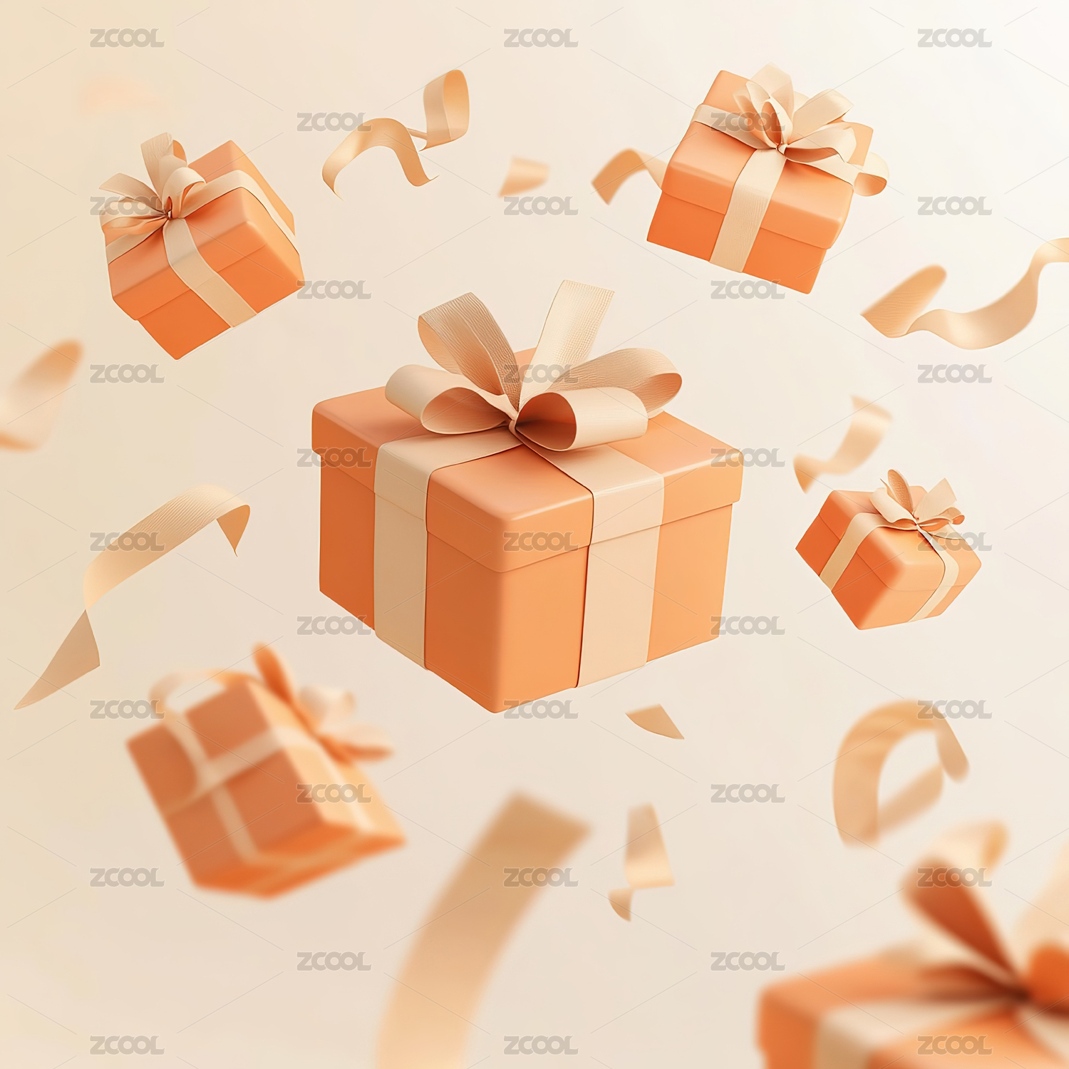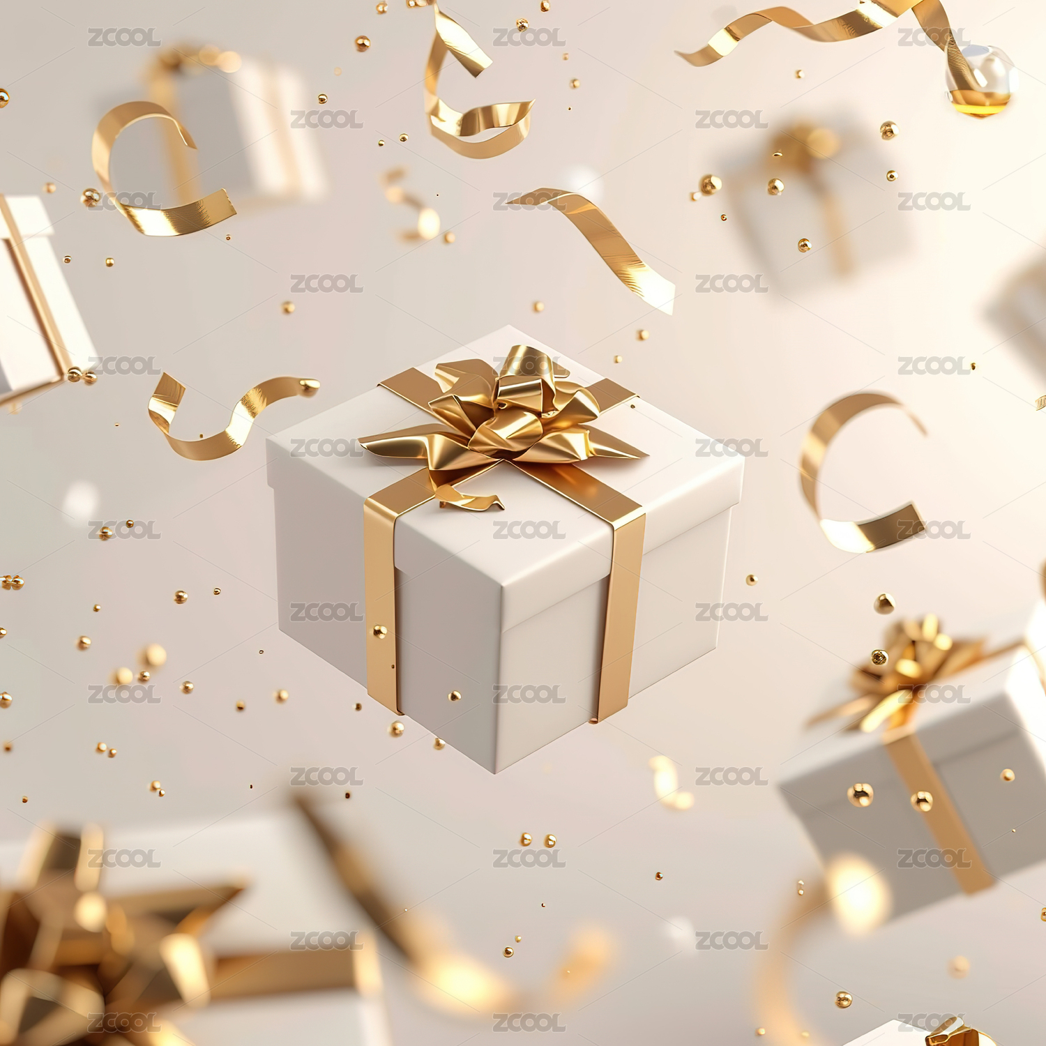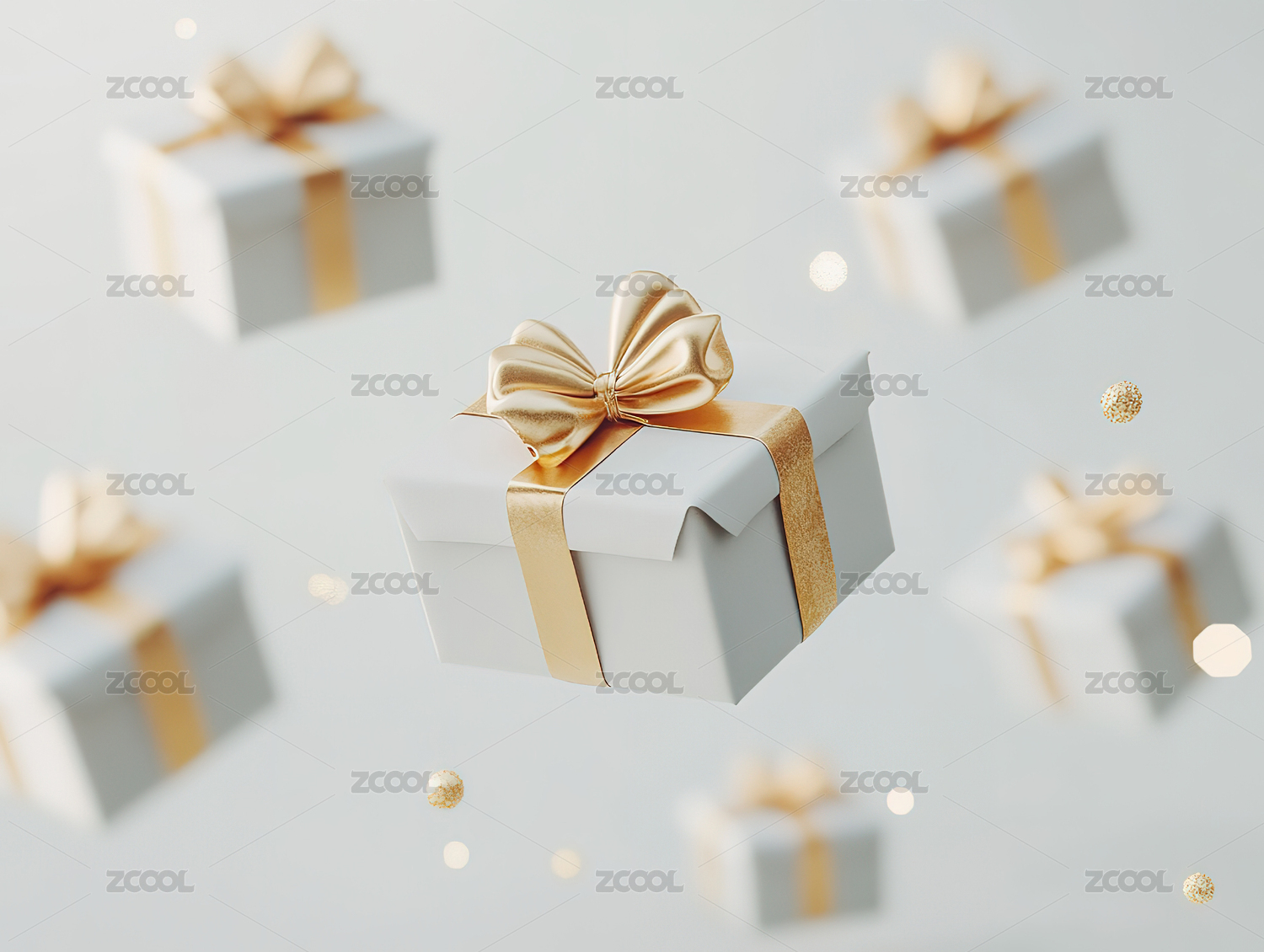 漂浮着的带有金色丝带的白色礼品盒