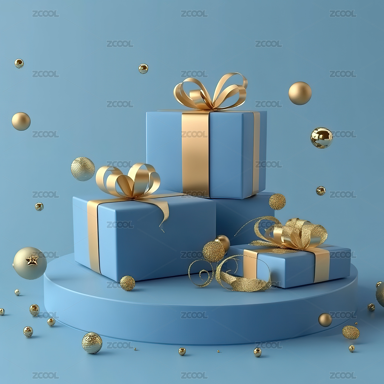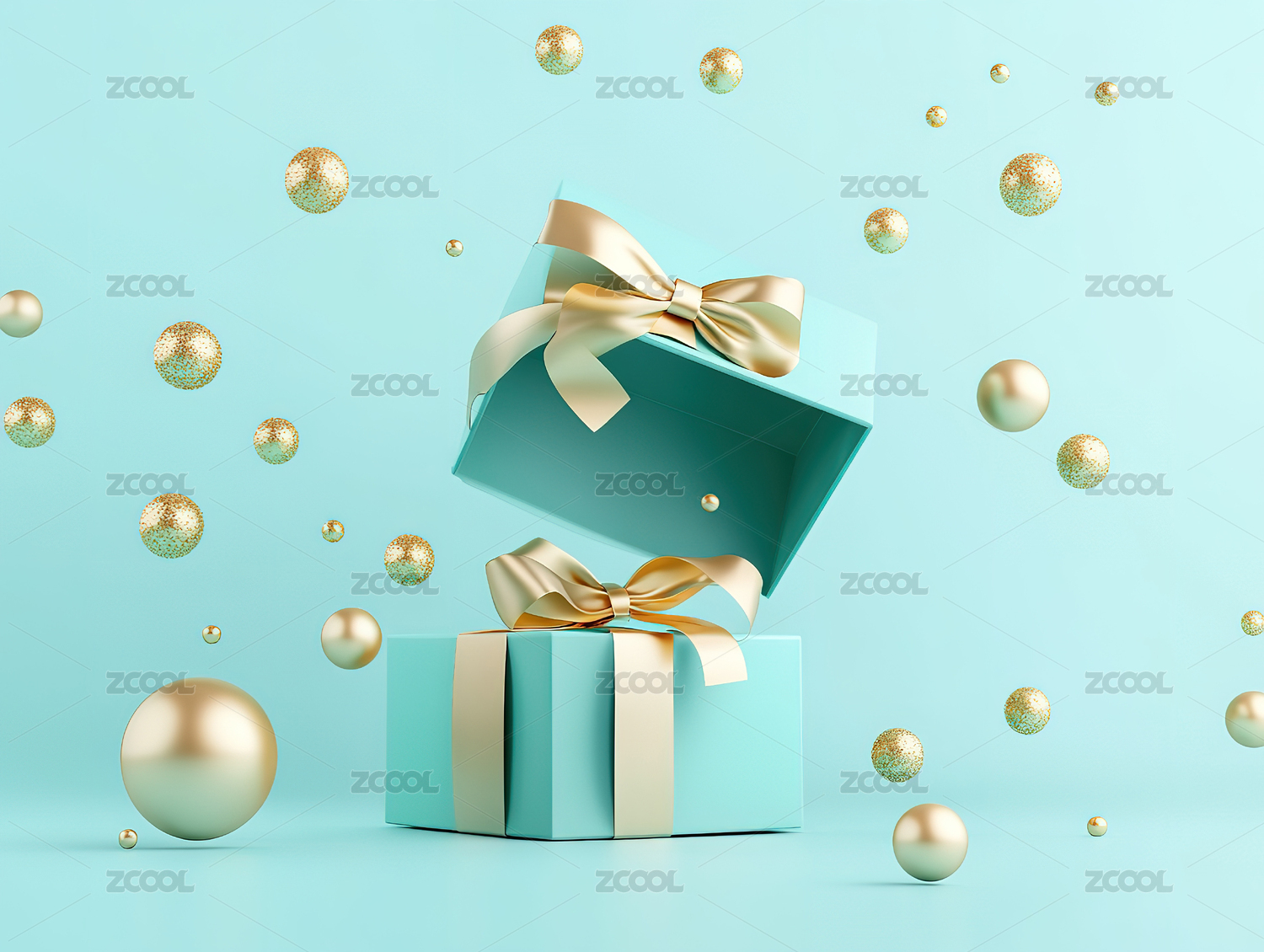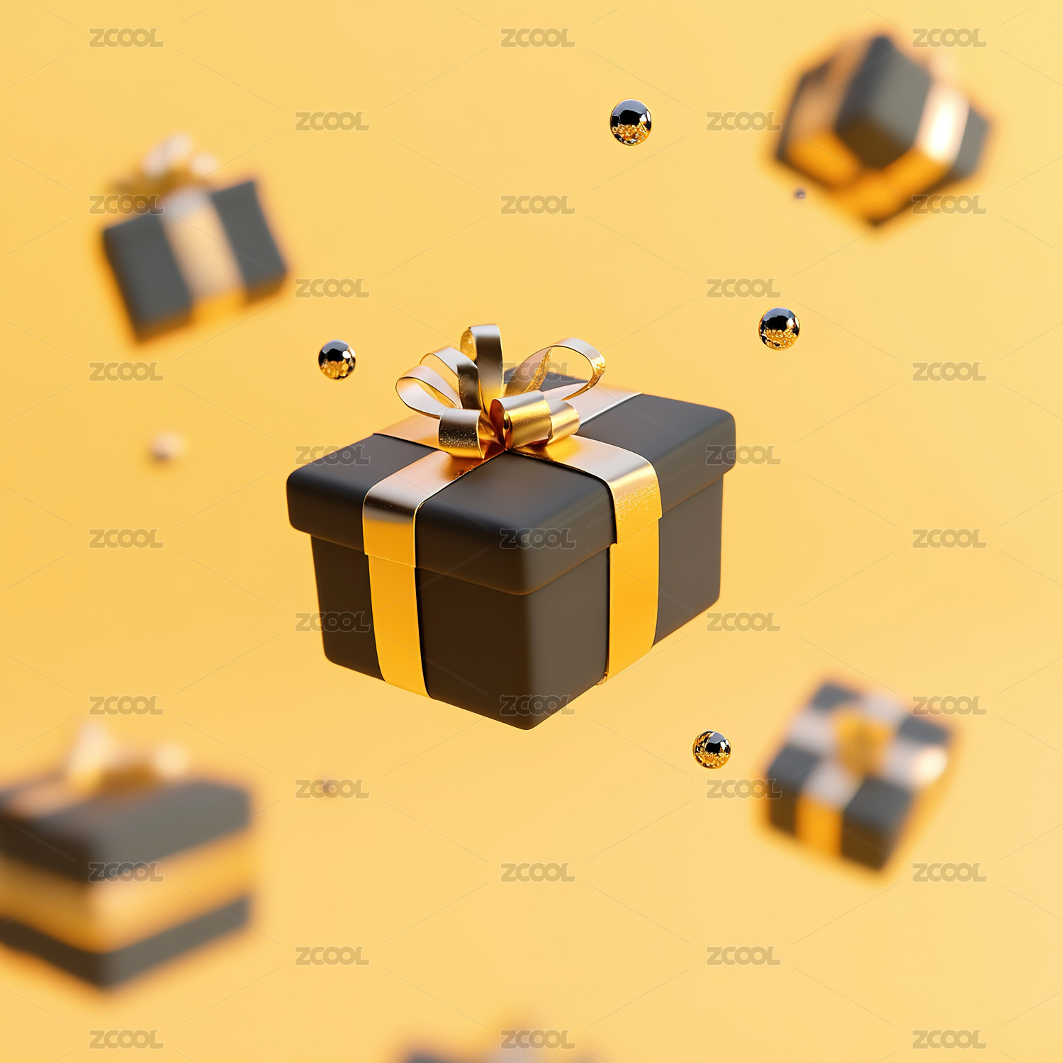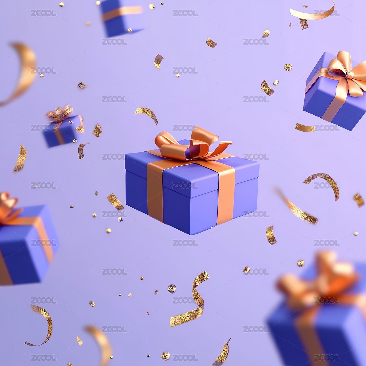 漂浮着的带有金色丝带的白色礼品盒