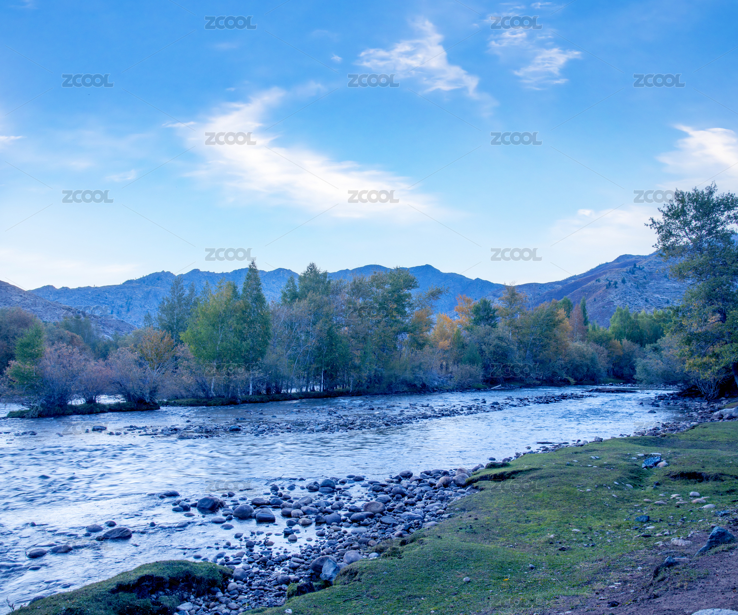 中国新疆阿勒泰可可托海额尔齐斯河溪流秋天
