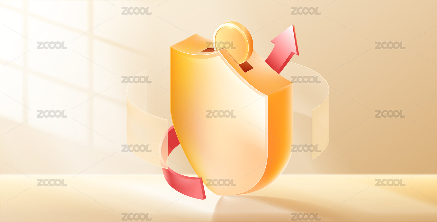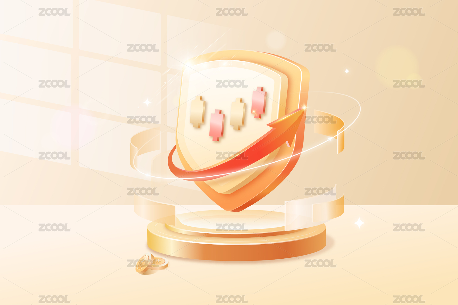 金字塔里的稳健理财盾牌柱状图和上涨箭头