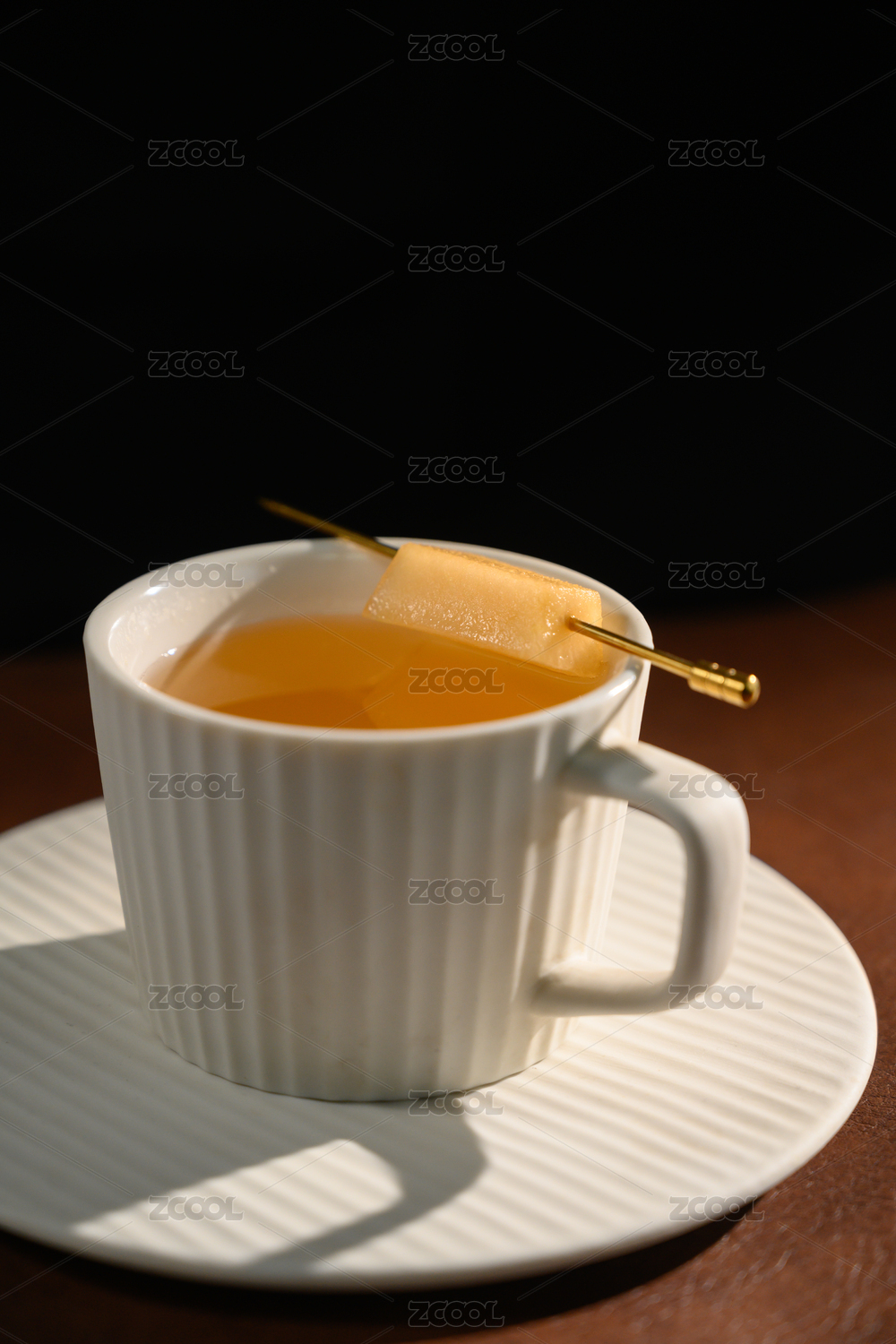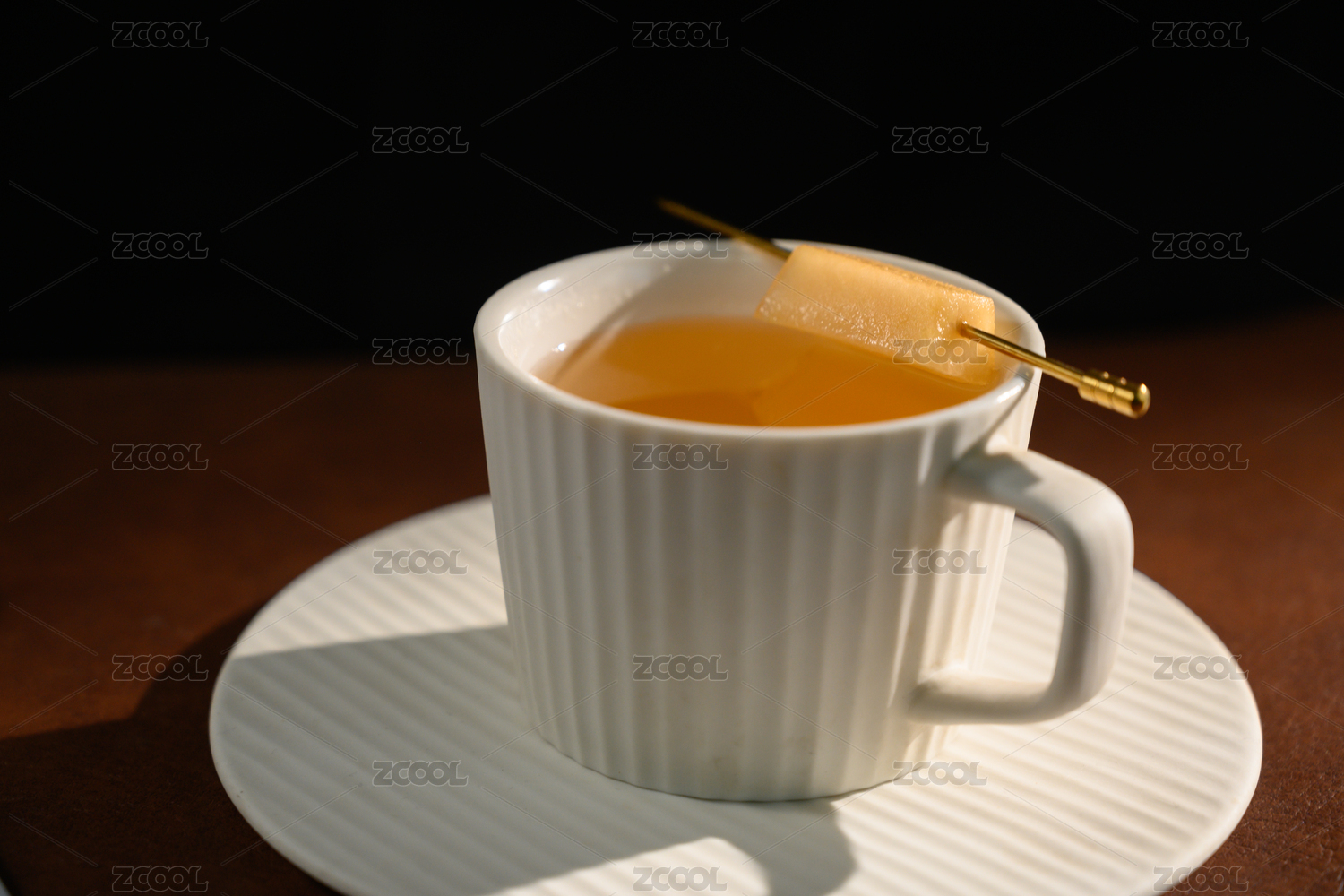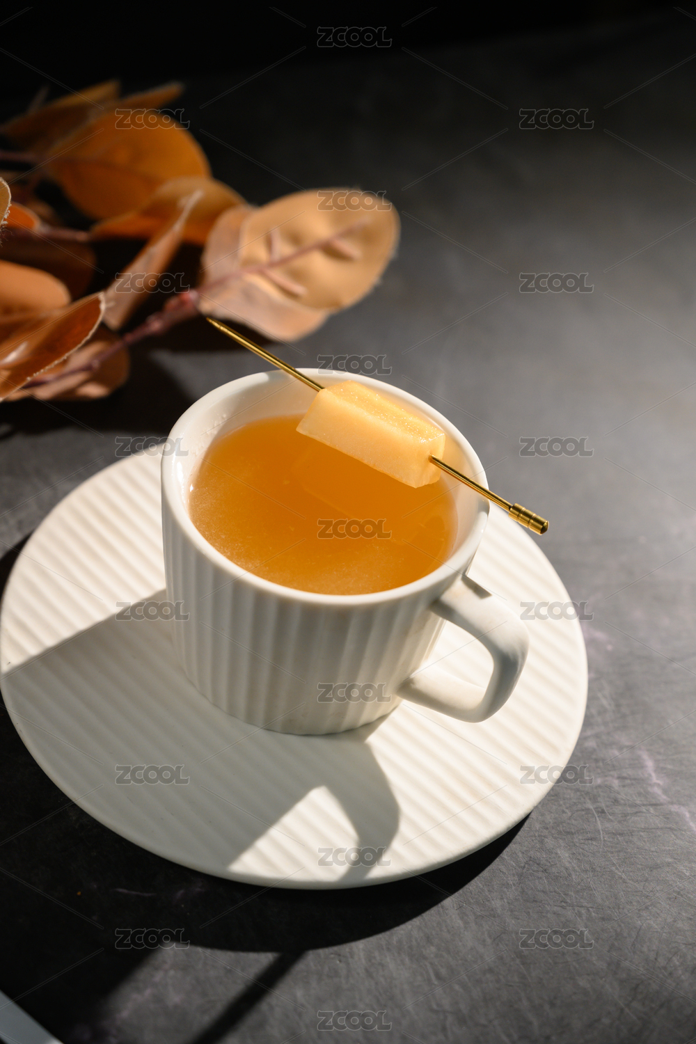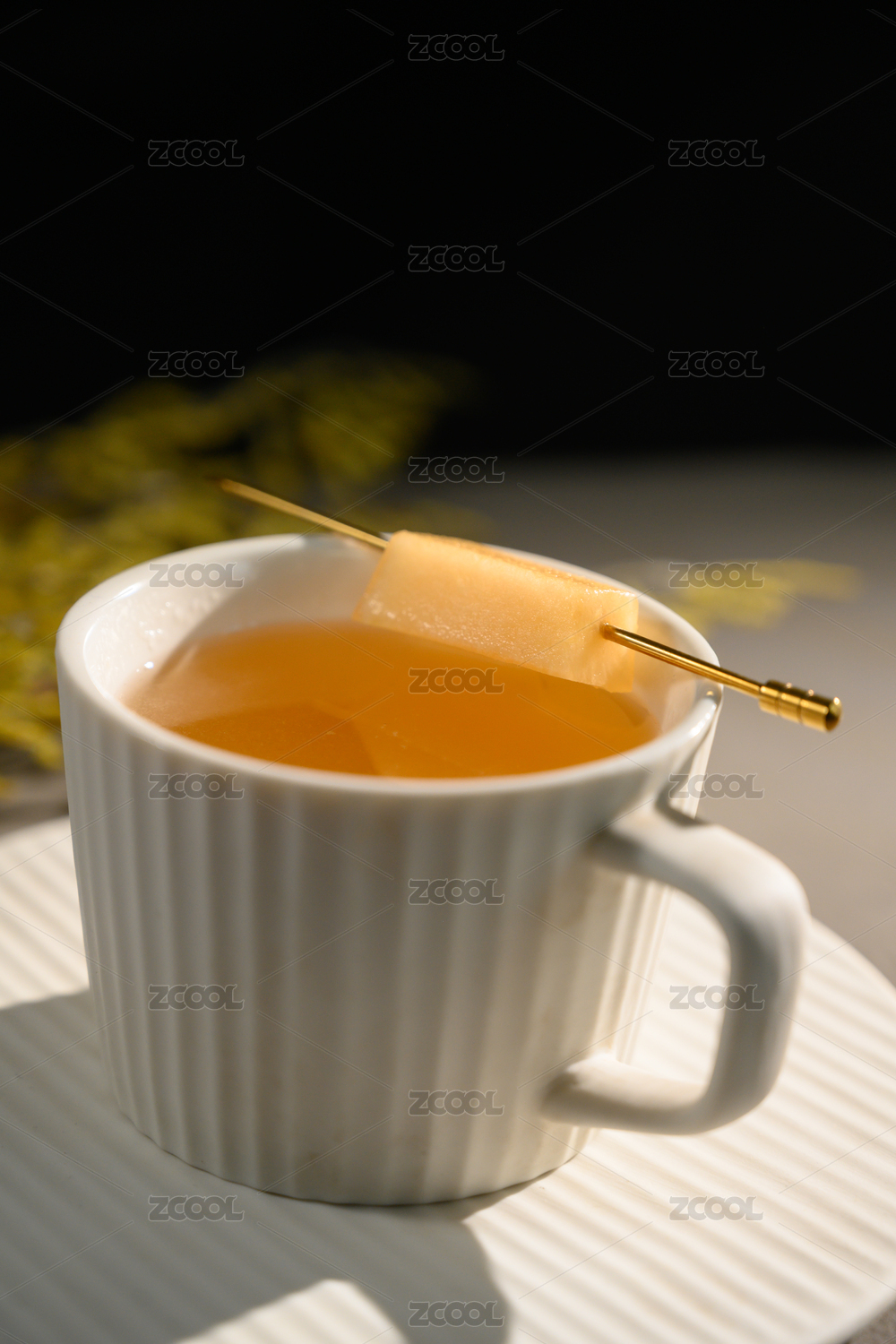 桌面上的杯子里的甘甜的岗捻子茶