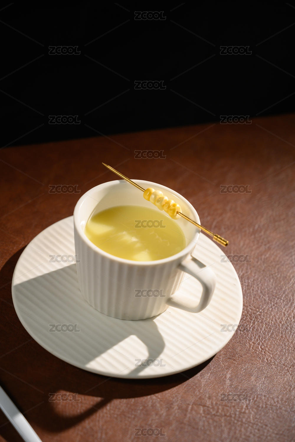桌面上的杯子里的美味可口的玉米汁