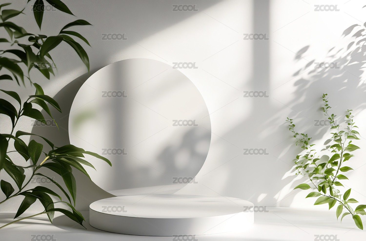 白色底座与绿色植物