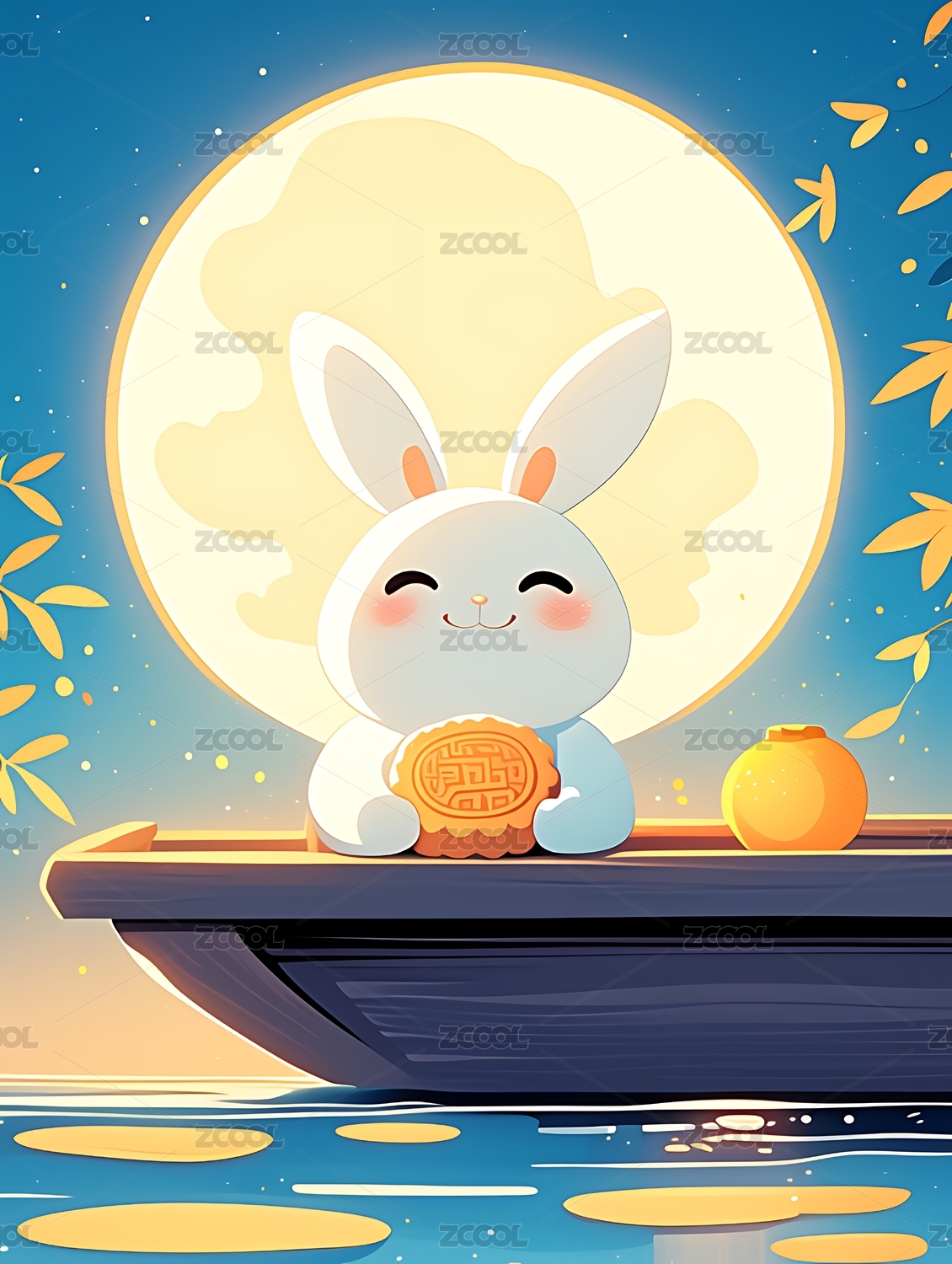 可爱卡通中秋节月饼兔子插画