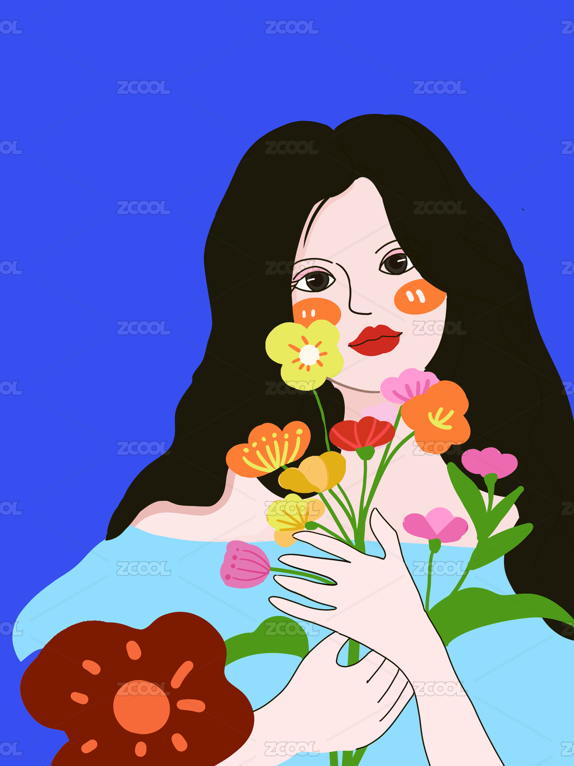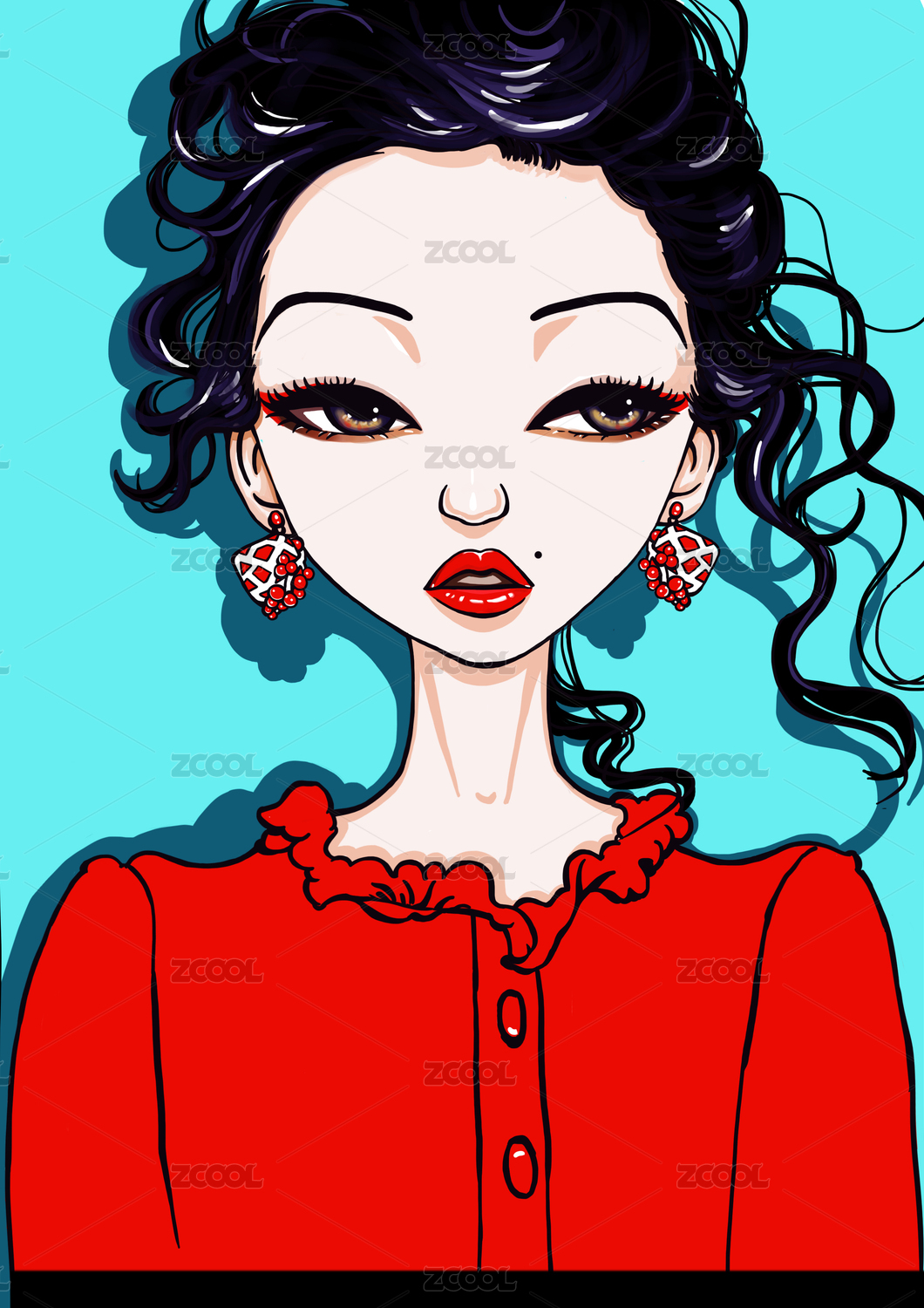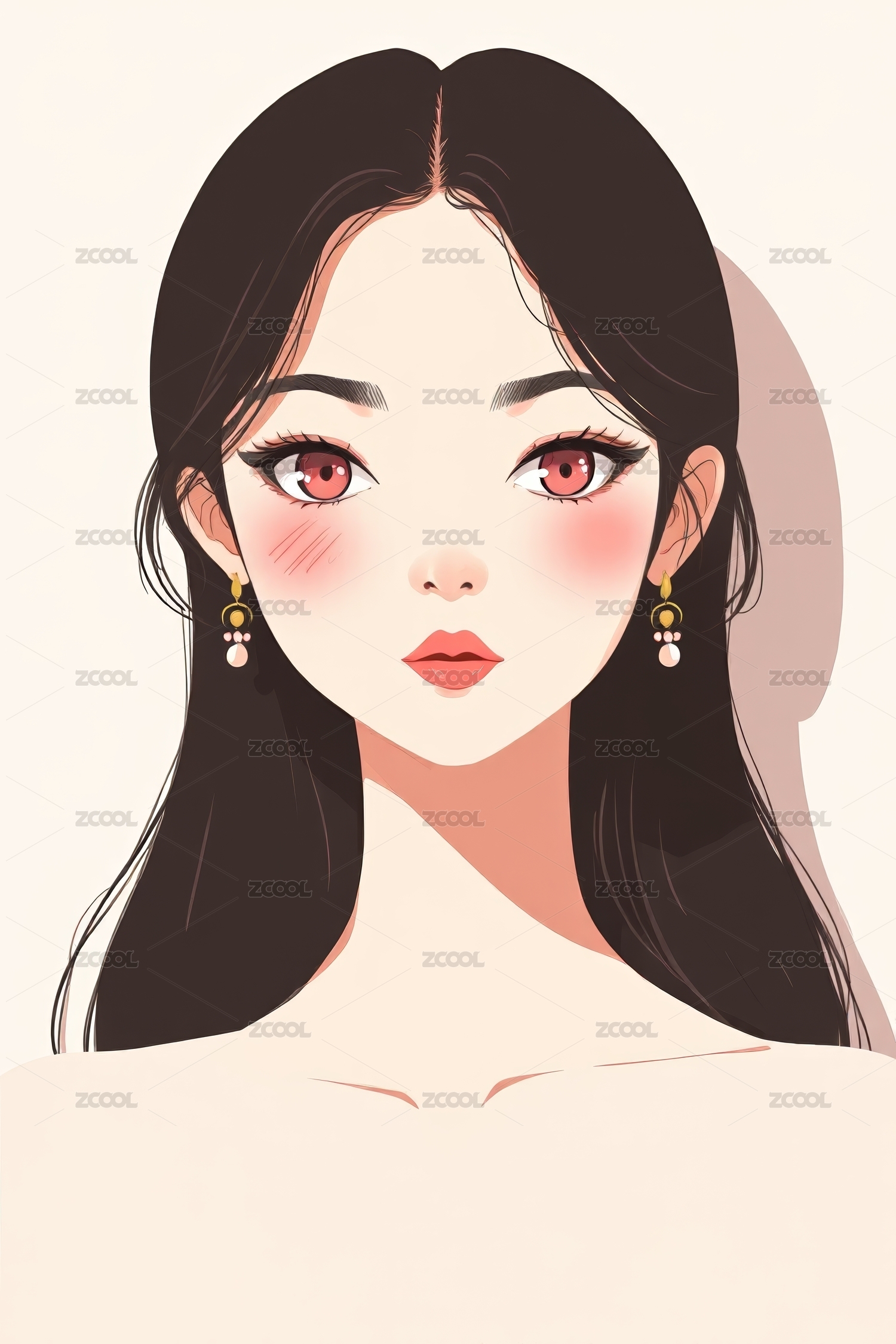动漫女孩黑长发蓝眼睛戴着耳环高清图片