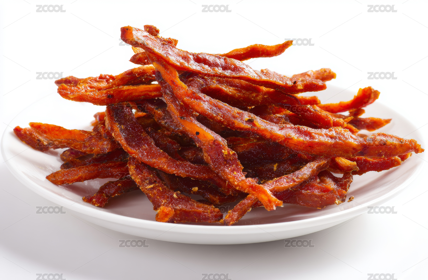 白底黑石垫上放着一堆香辣鳗鱼丝