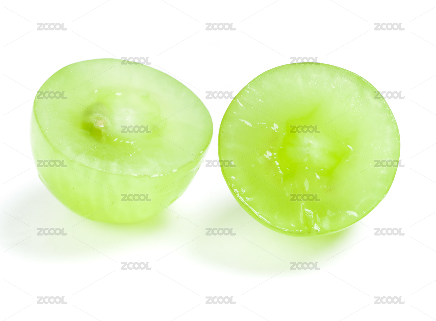 白底上切开叠放的阳光玫瑰青提