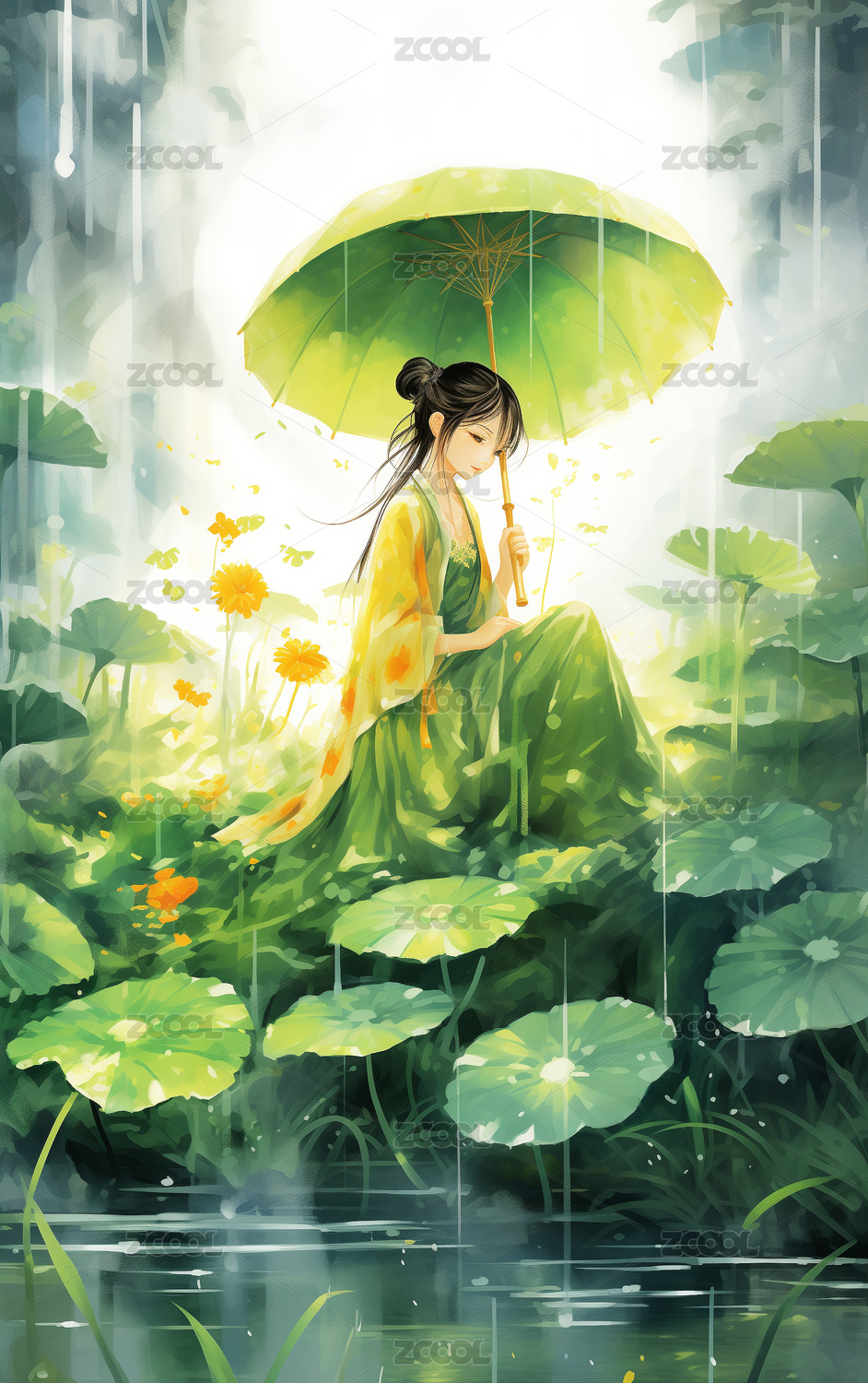 古风场景插画唯美壁纸海报小说封面烟雨三月